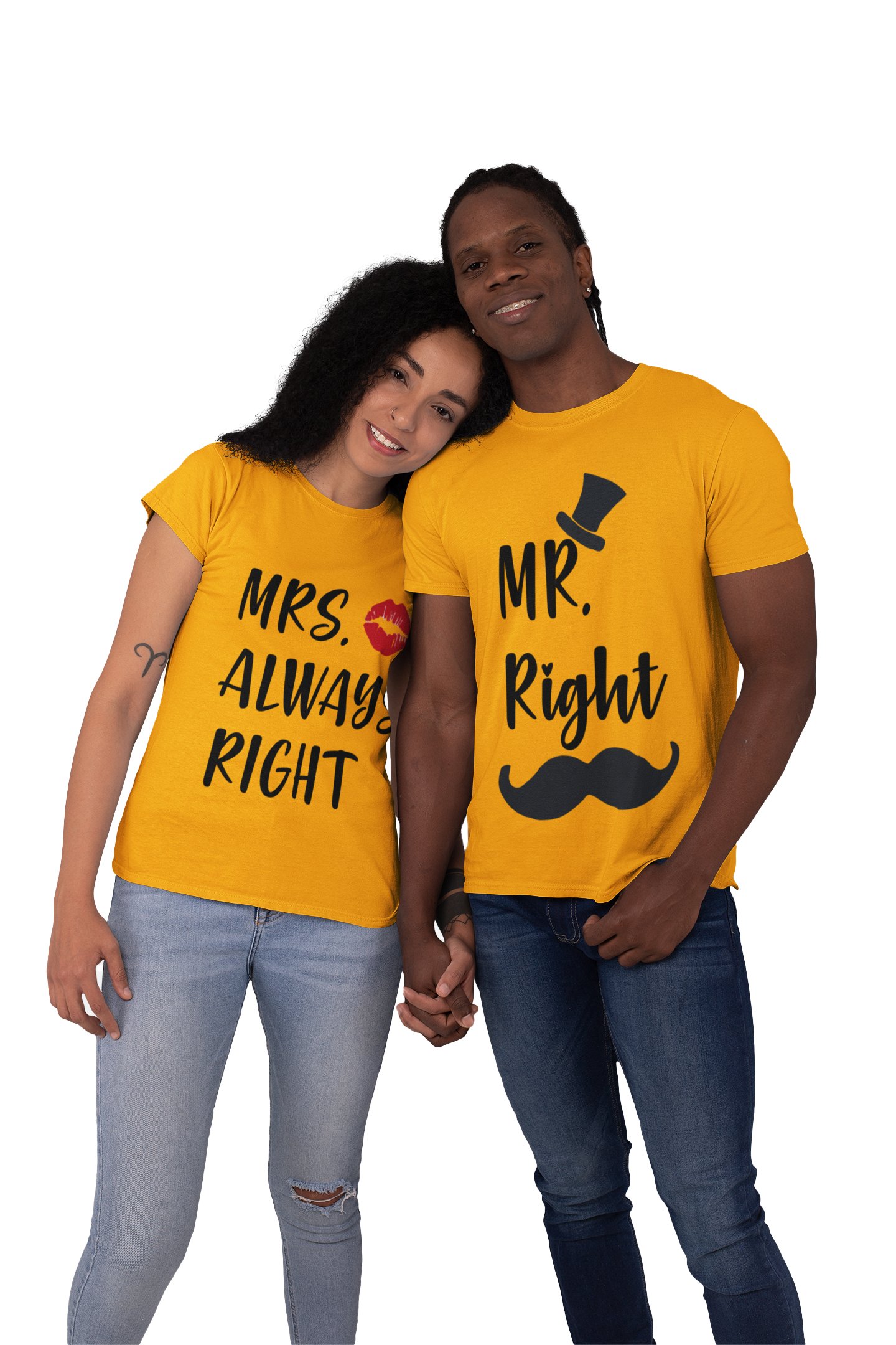 Mr. Right and Mrs. Always Right (Yellow T)- Couple Printed T-Shirts -Lover T-shirts