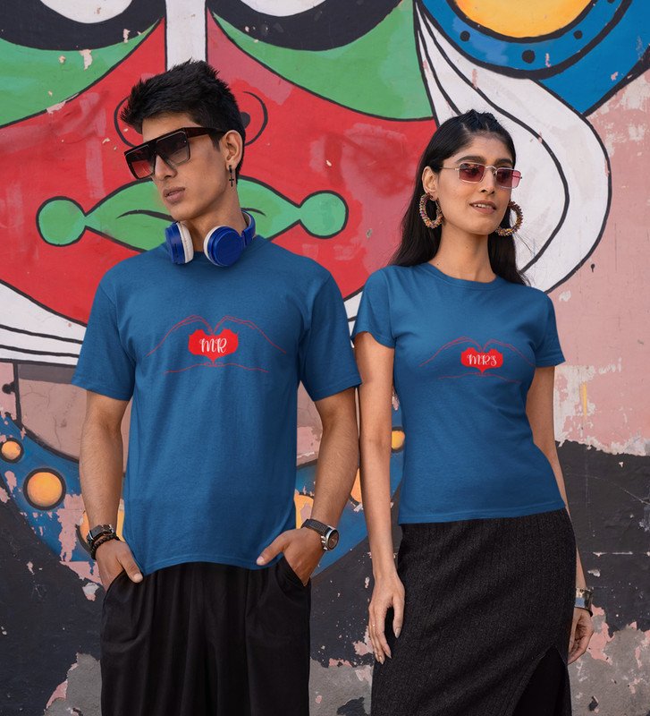 Mr/Mrs Printed Couple (blue) T-shirts