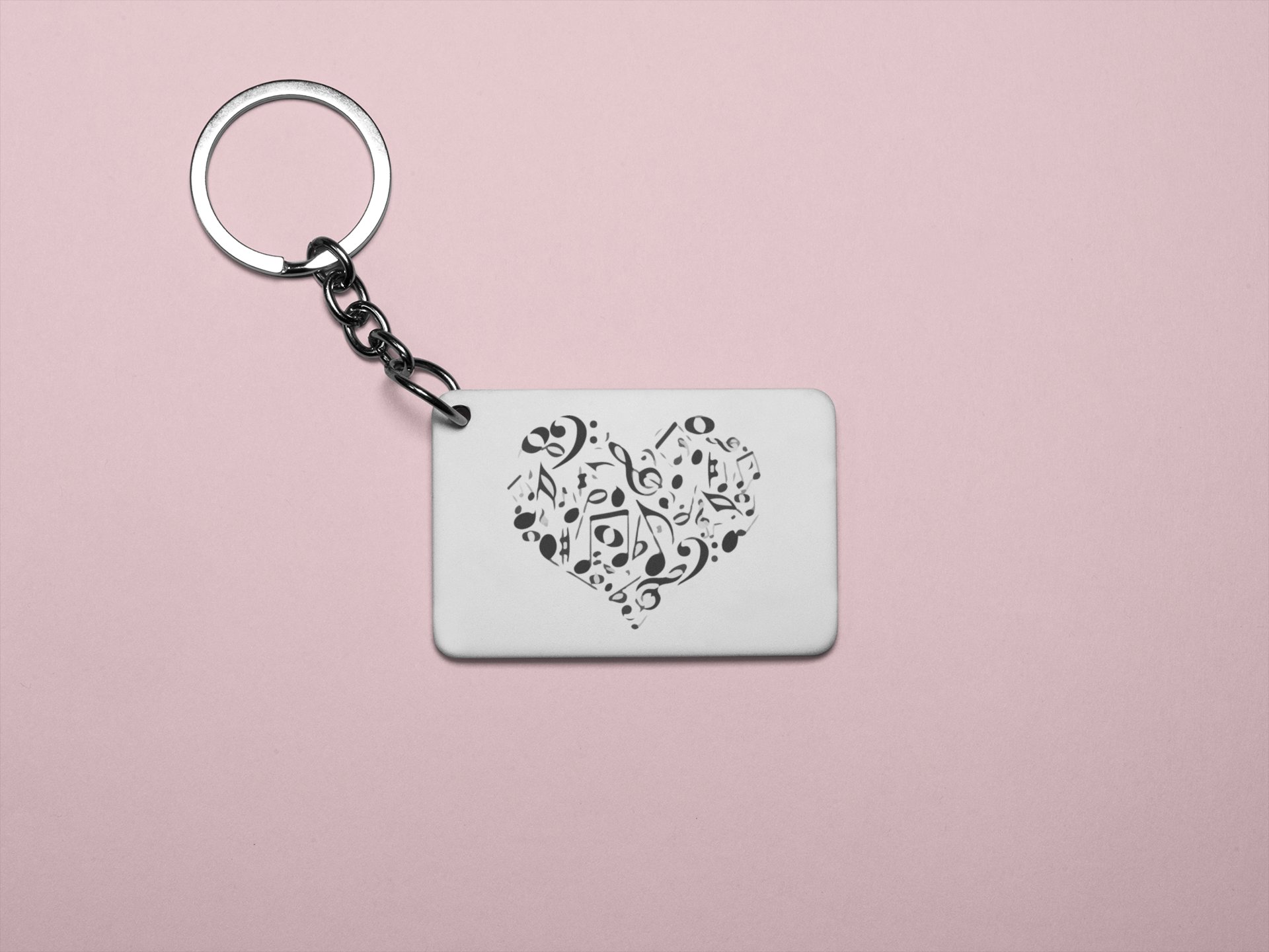 Musical instrument (Black) Printed In Heart -White -Designable Musicllnstrument Keychain ( Combo Set Of 2)