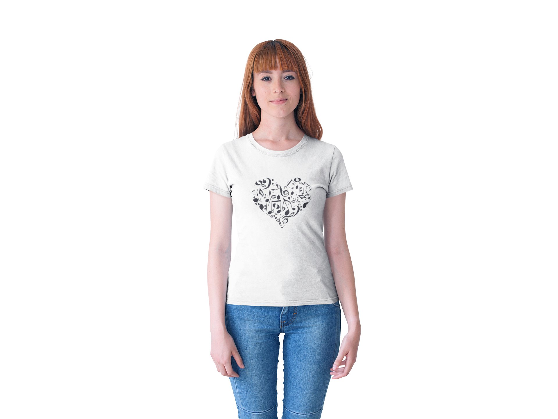 Musical instrument (Black) Printed In Heart -White - Women's - printed T-shirt - comfortable round neck Cotton