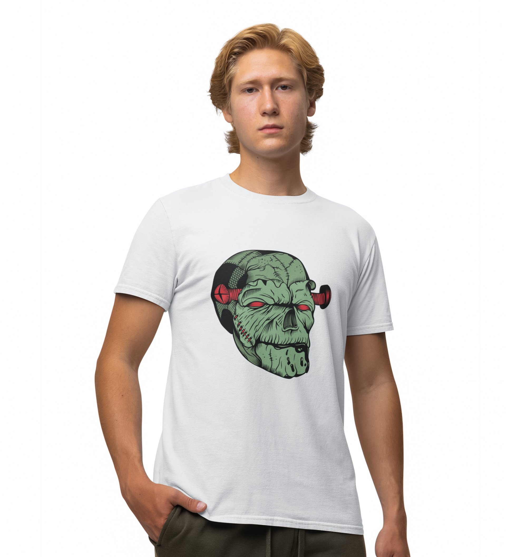 Green Monster Head White Round Neck Cotton Half Sleeved Men's T-Shirt with Printed Graphics
