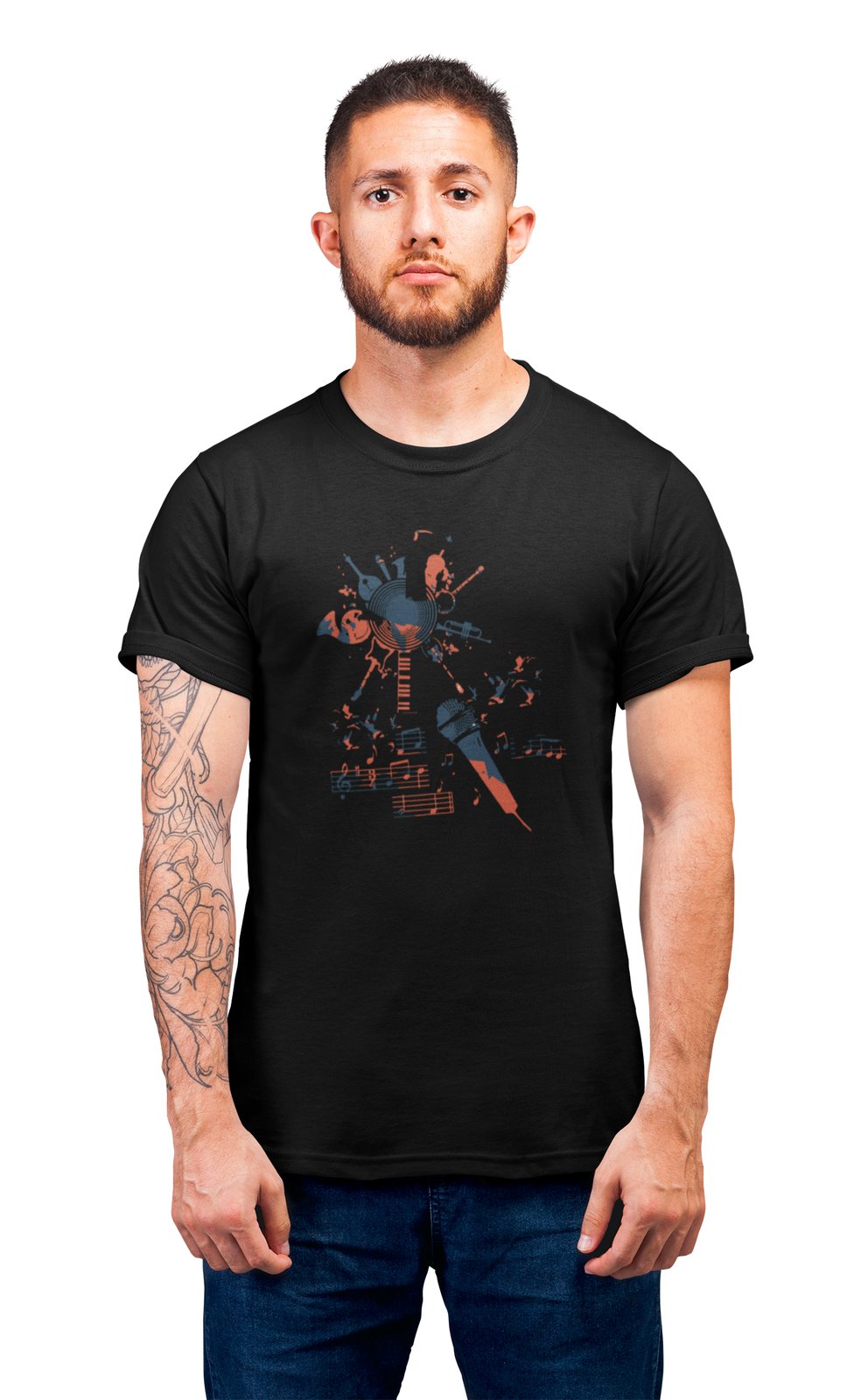 Music mania- Black - Men's - printed T-shirt - comfortable round neck Cotton
