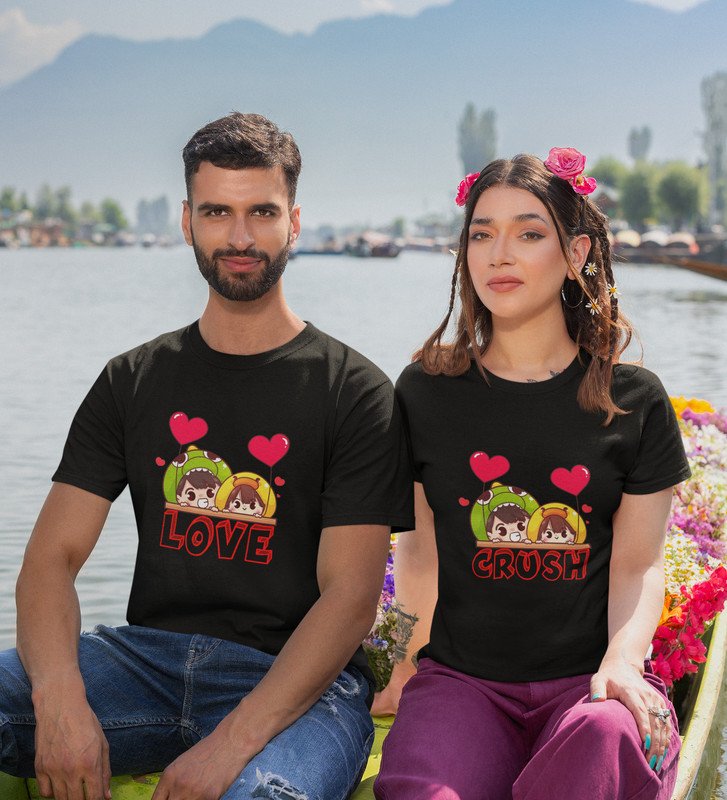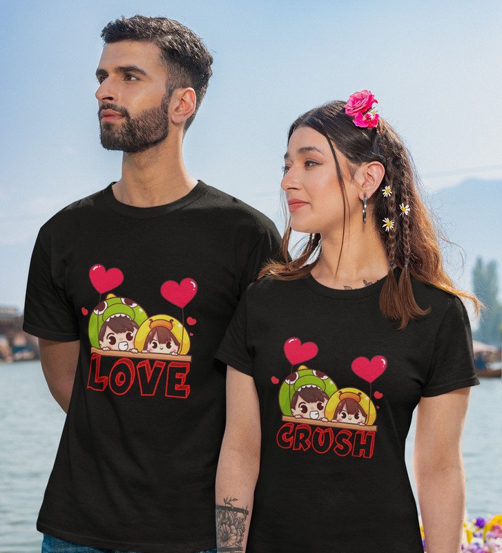 My Crush Is My Love Cutest Printed (Black) T-shirts For Couples