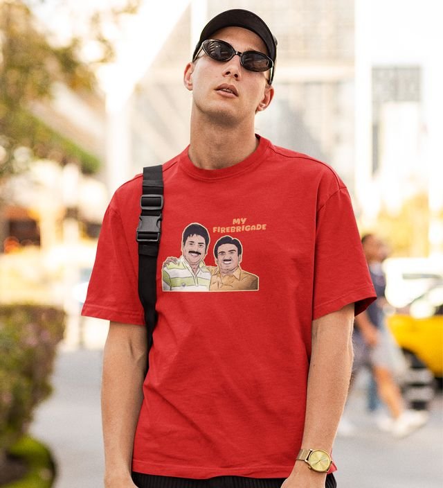 My Firebrigade! Red Round Neck Cotton Half Sleeved Men T Shirt with Printed Graphics