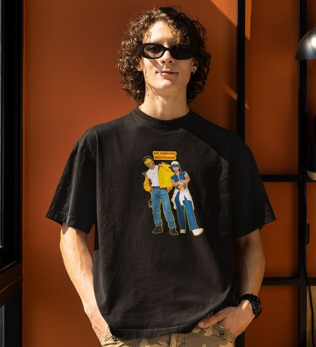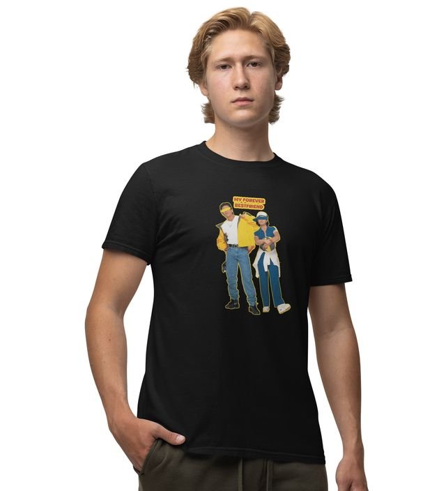My Forever Bestfriend Black Round Neck Cotton Half Sleeved Men T Shirt with Printed Graphics