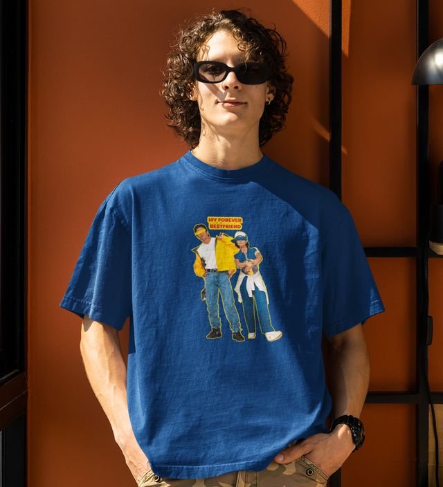 My Forever Bestfriend Blue Round Neck Cotton Half Sleeved Men T Shirt with Printed Graphics