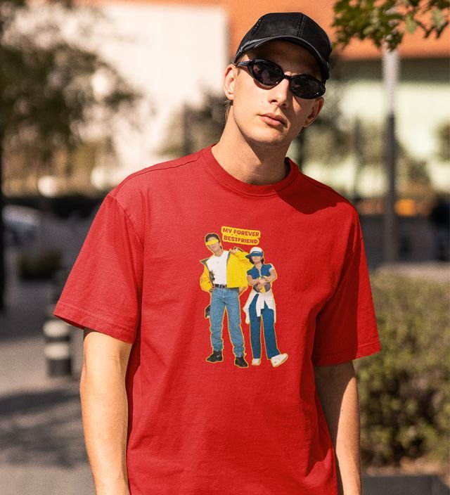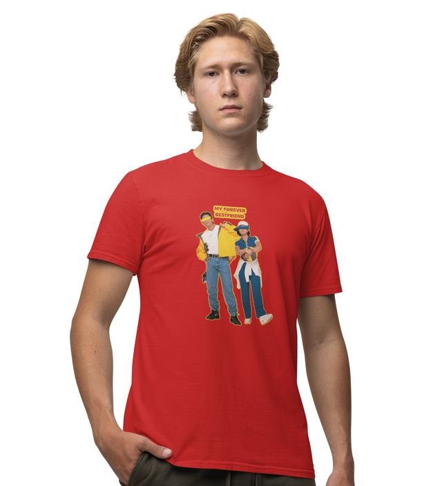 My Forever Bestfriend Red Round Neck Cotton Half Sleeved Men T Shirt with Printed Graphics