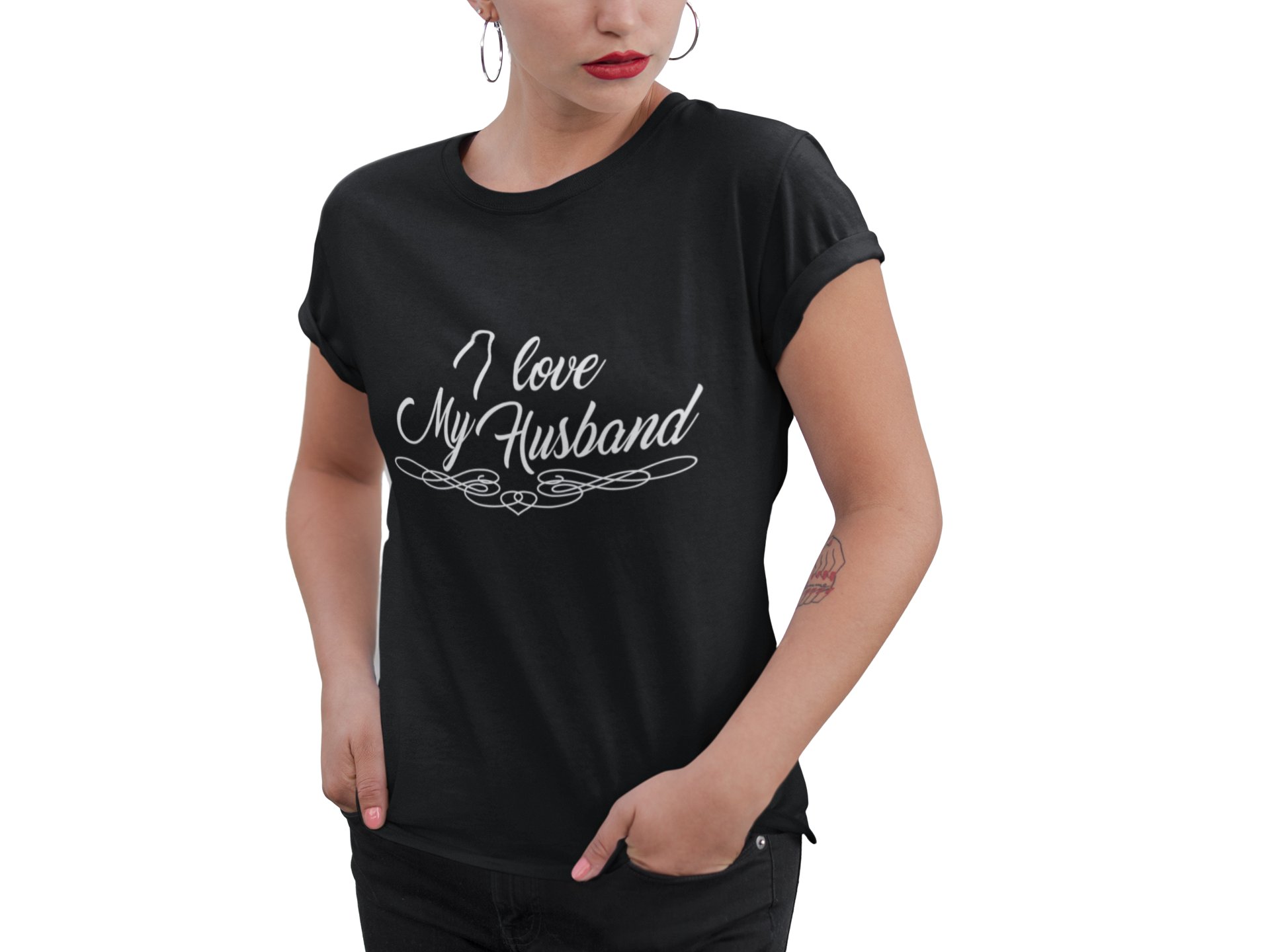My husband-printed family themed cotton blended half-sleeve t-shirts made for women (black)