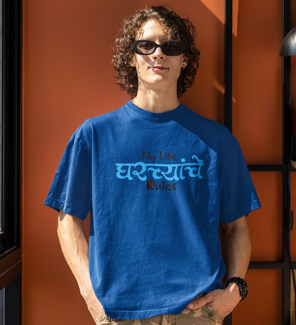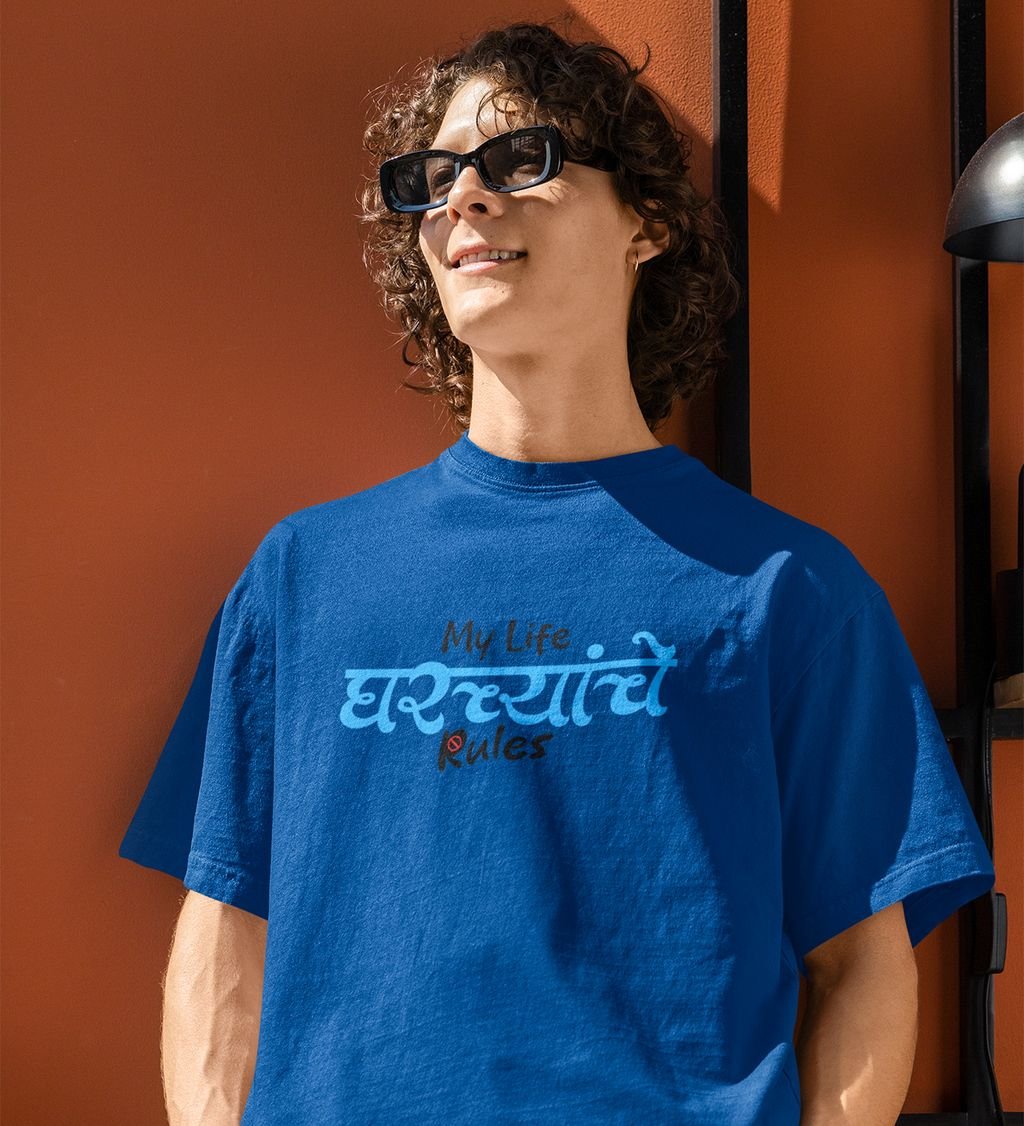 My Life Family Rules Blue Round Neck Cotton Half Sleeved Mens T Shirt with Printed Graphics