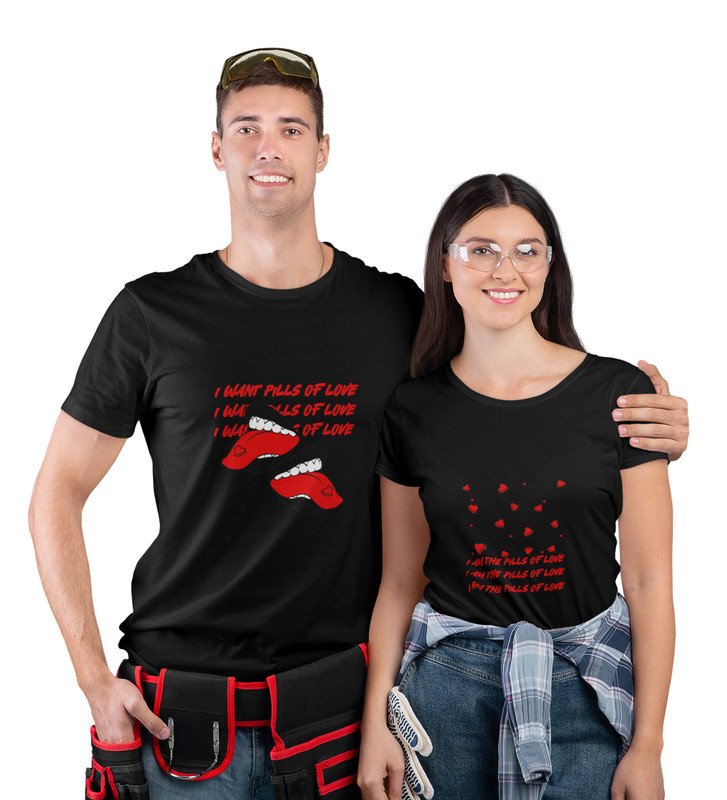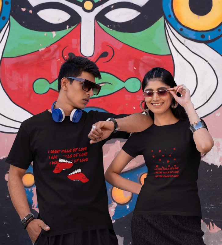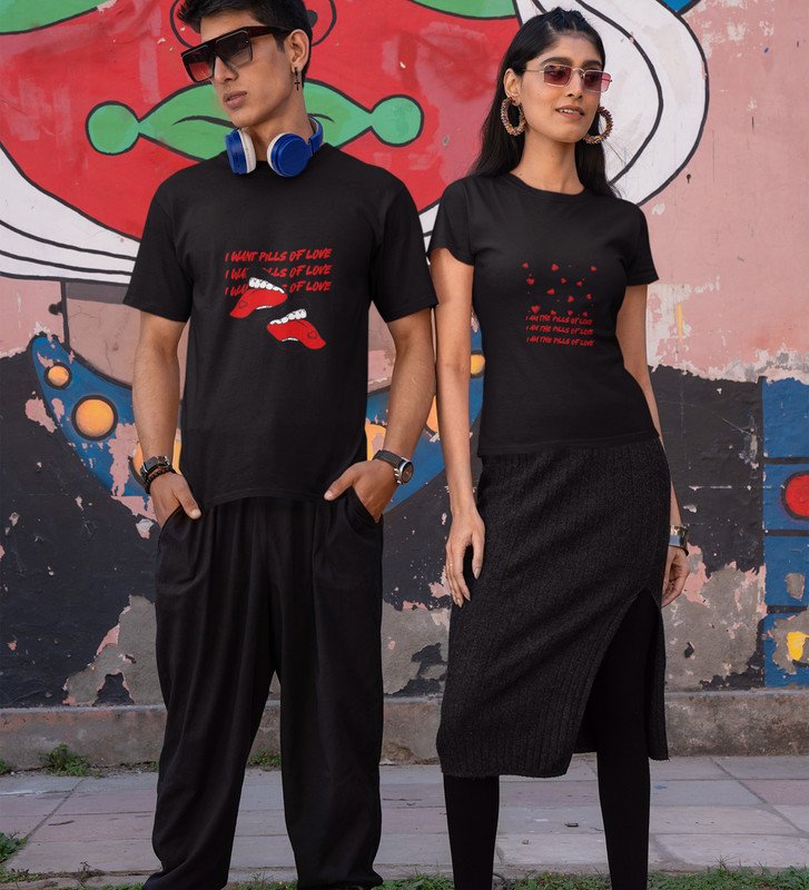My Pills Of Love Cute Printed (Black) T-shirts For Couples