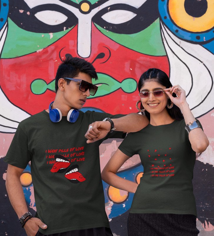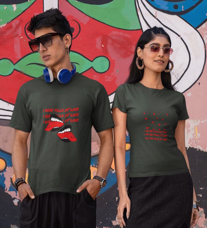 My Pills Of Love Cute Printed (green) T-shirts For Couples
