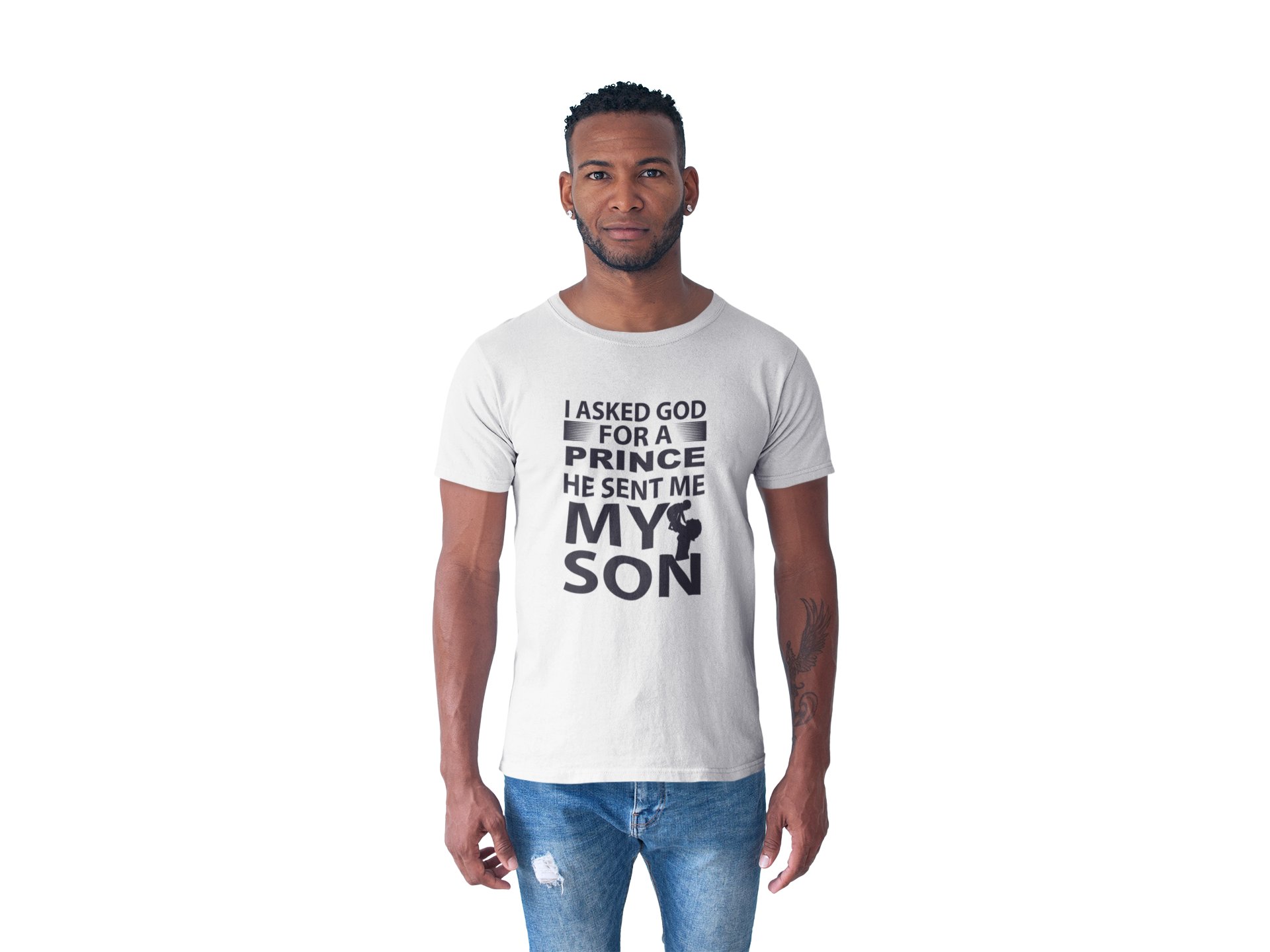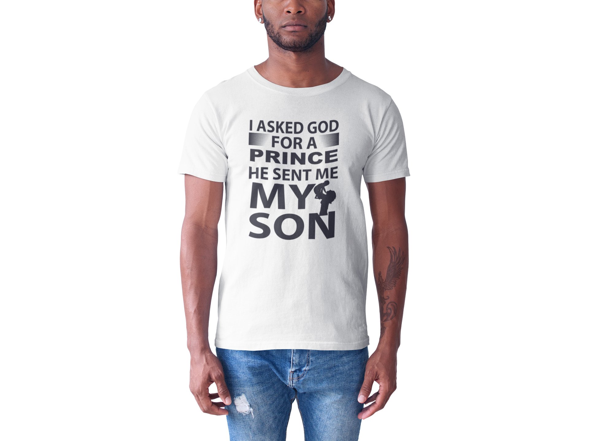 My son -printed family themed cotton blended half-sleeve t-shirts made for men (white)