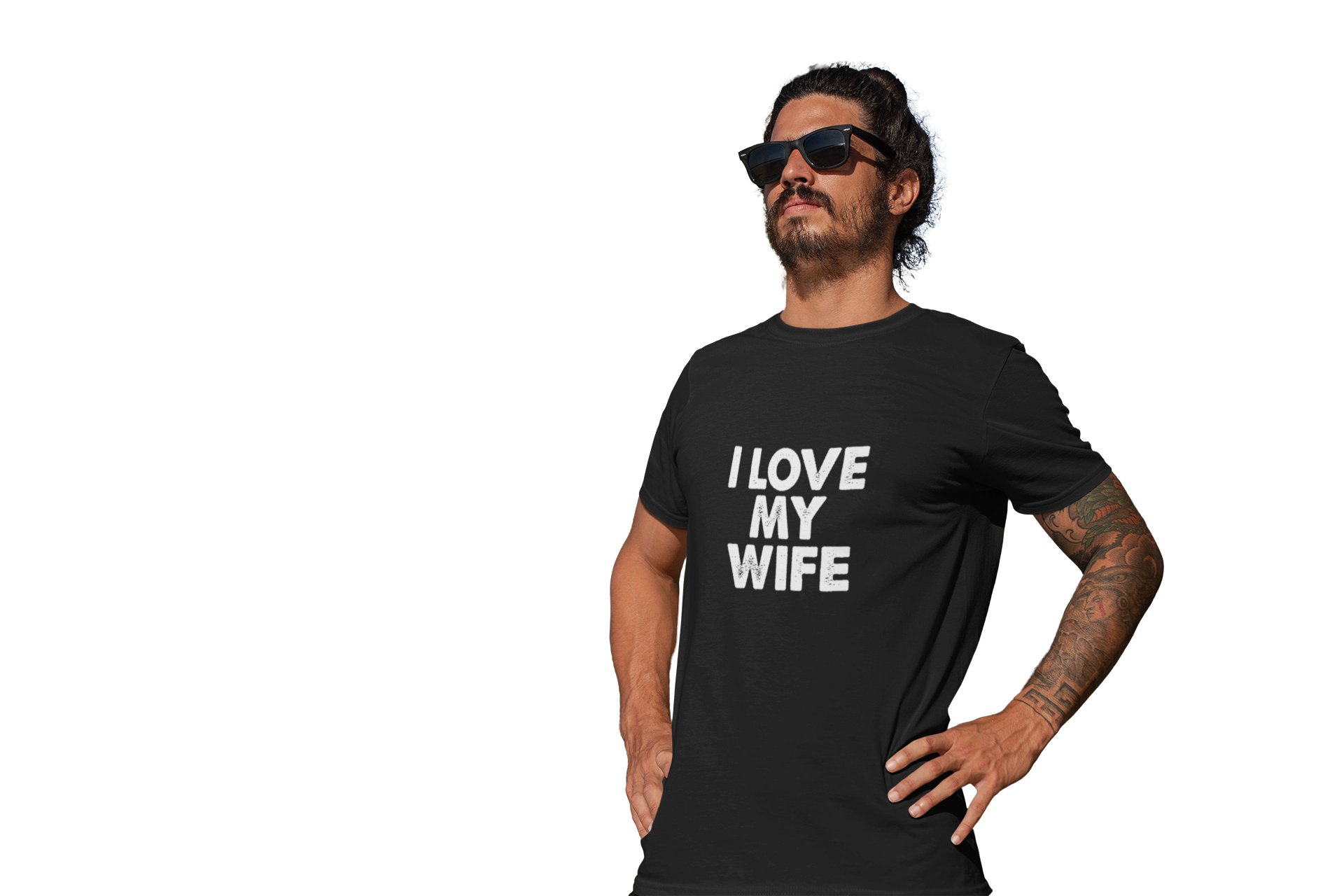 my wife -printed family themed cotton blended half-sleeve t-shirts made for men (black)