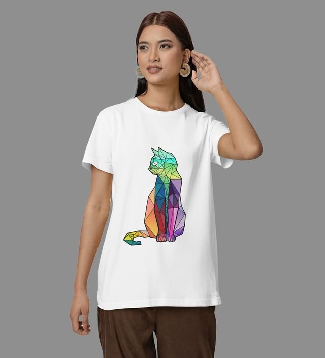 Mystic Meow Prism: Graphic Printed White T-Shirt