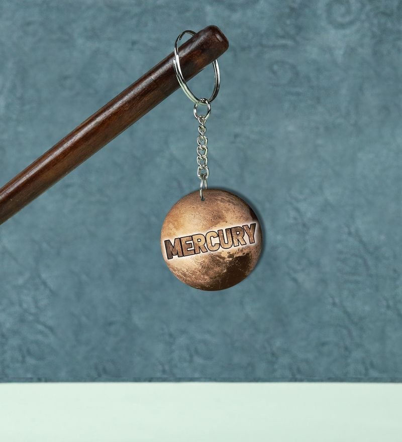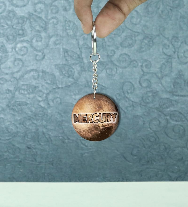Mystical Mercury Planet Art Printed Keychain Pack of 2