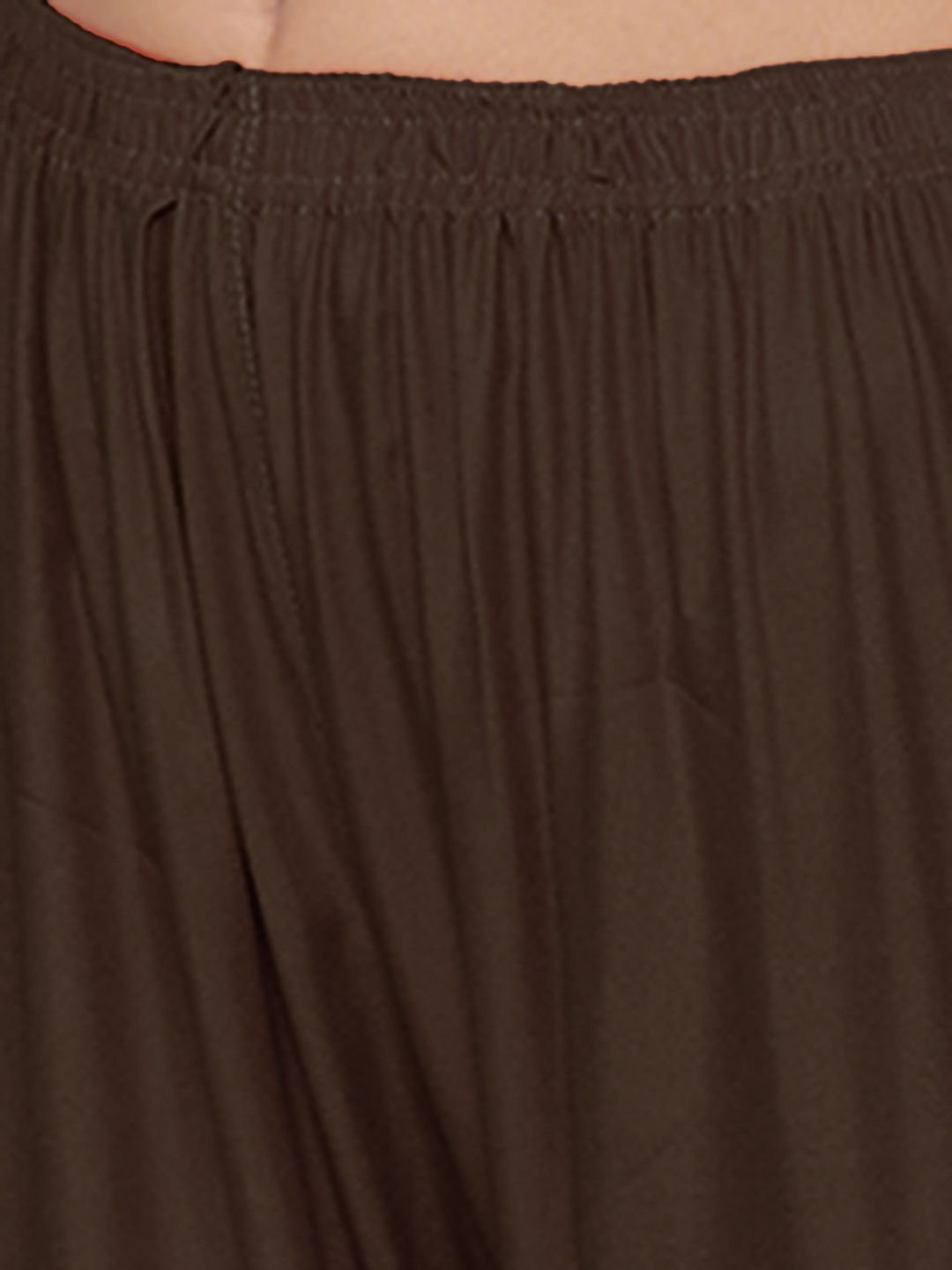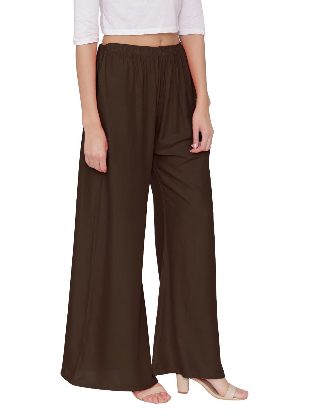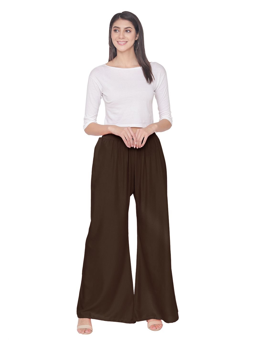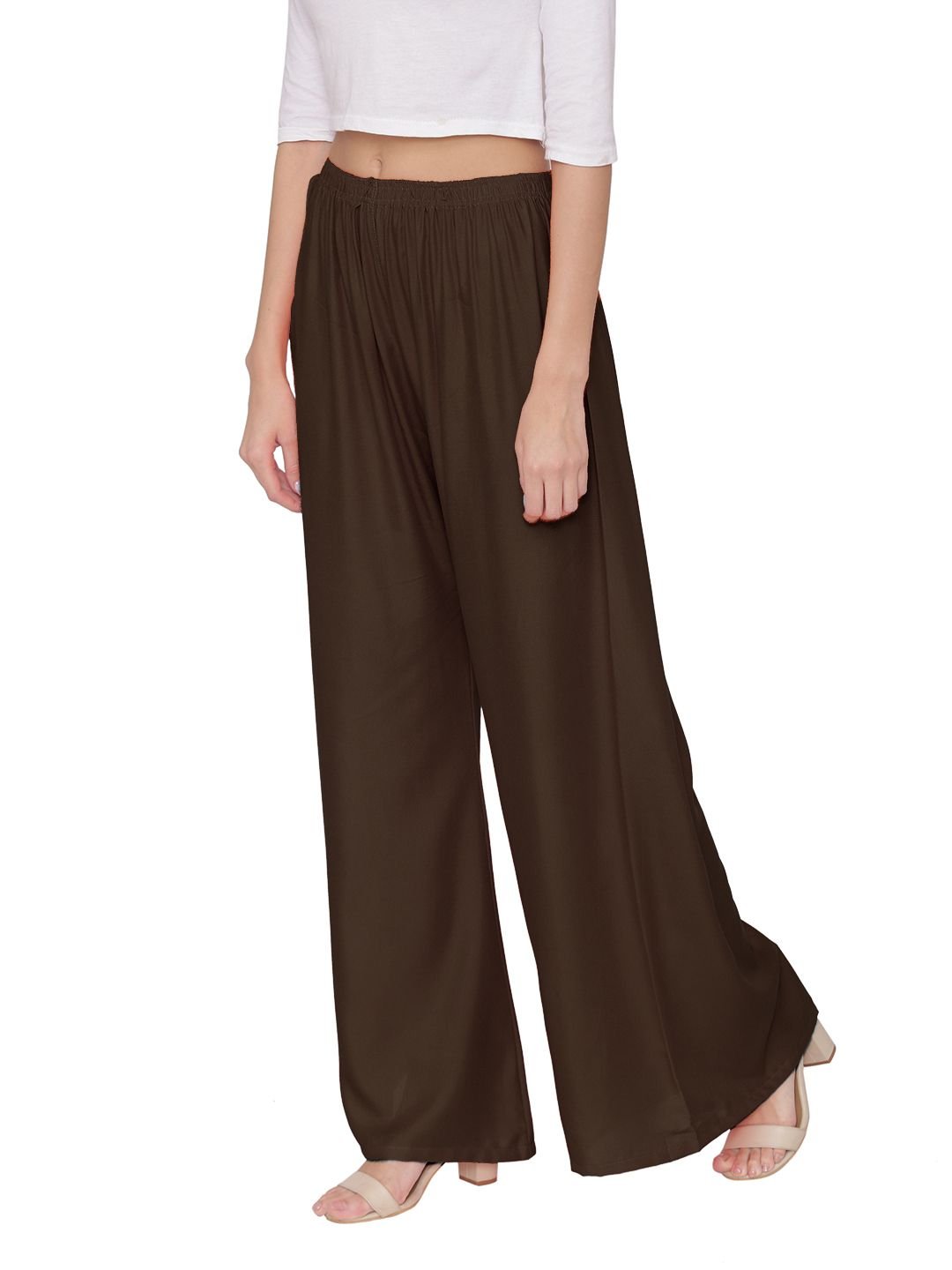 N-Gal Rayon Women's Wide Leg Elastic Waist Band Breathable Plain Palazzo Pant_CoffeeBrown