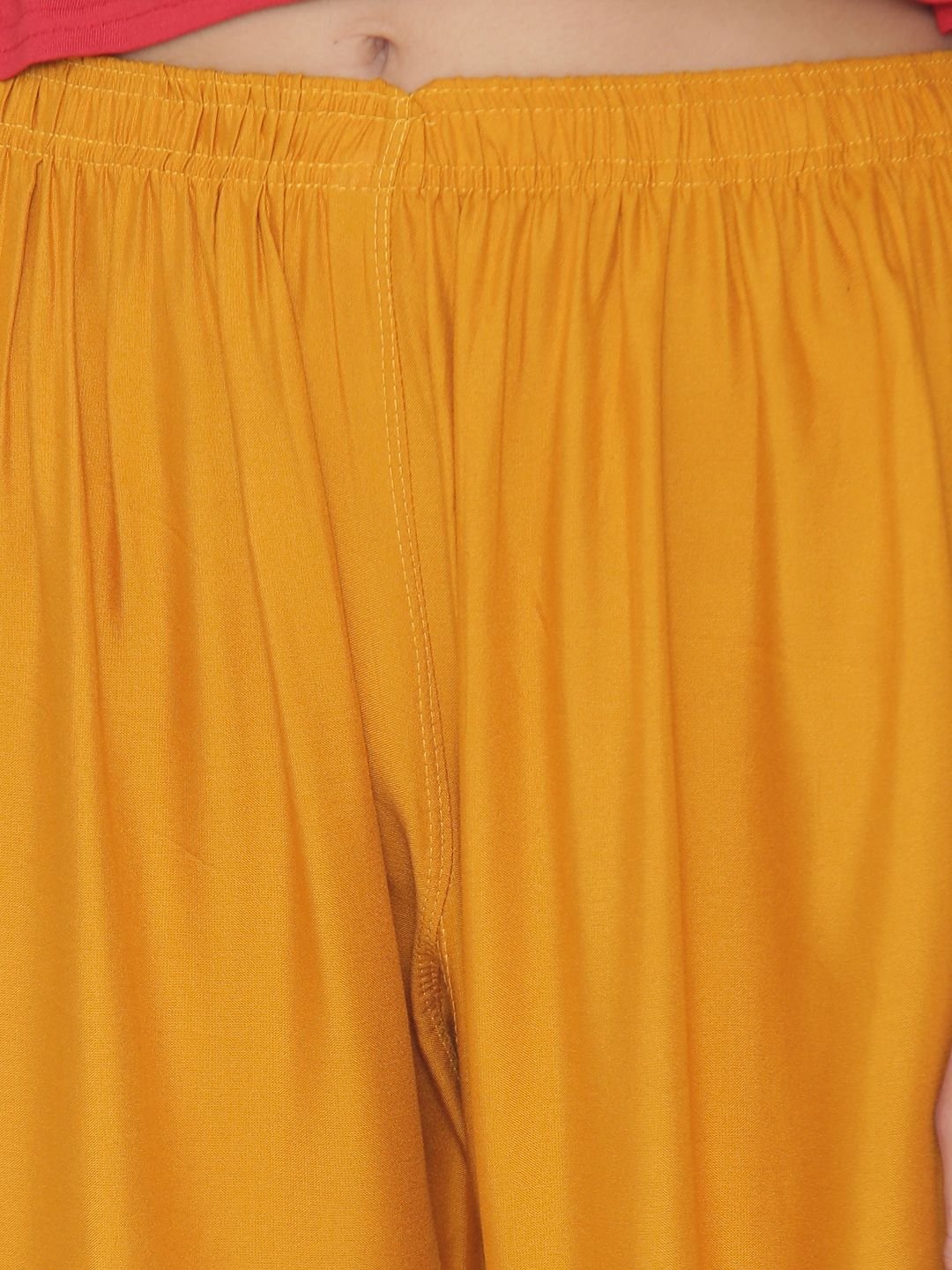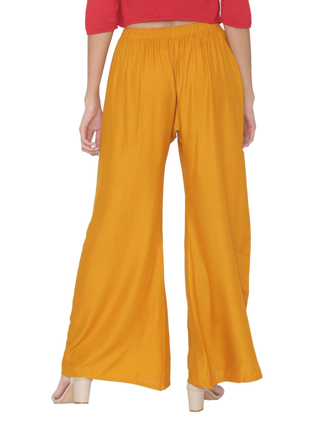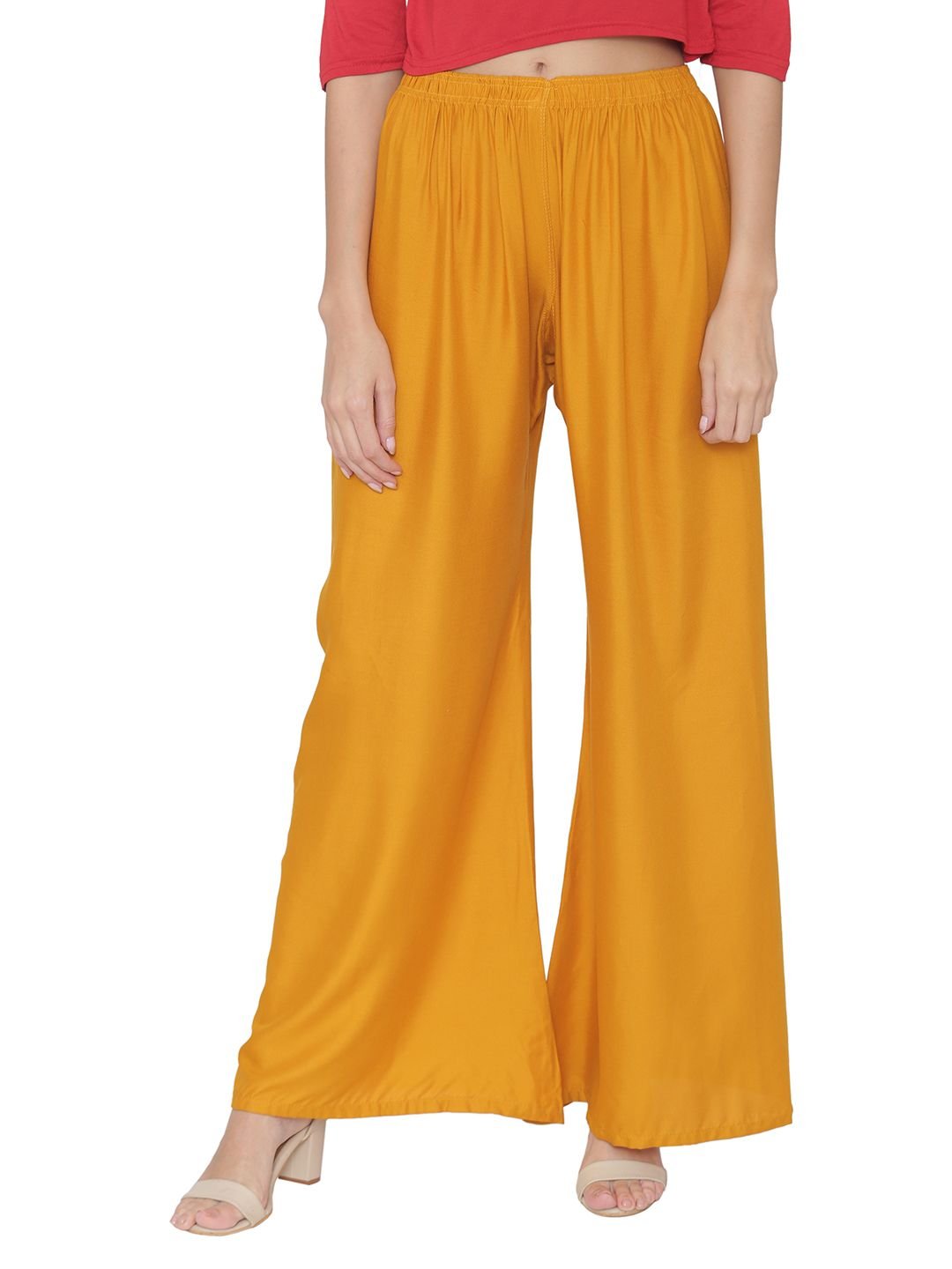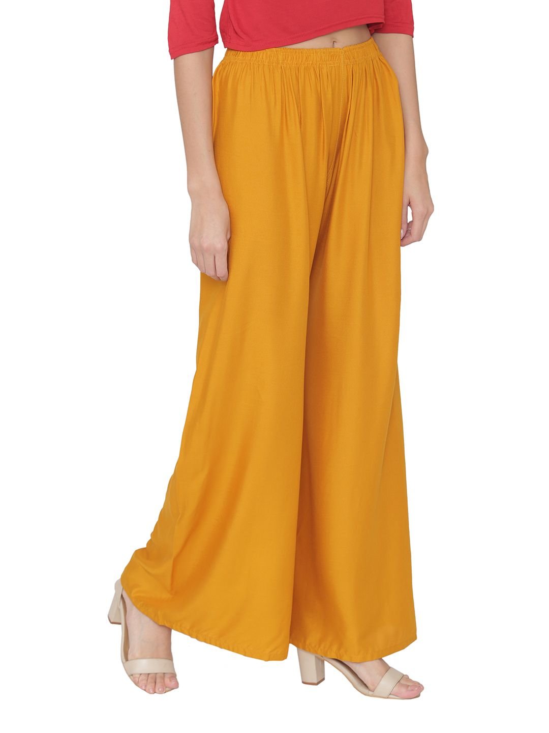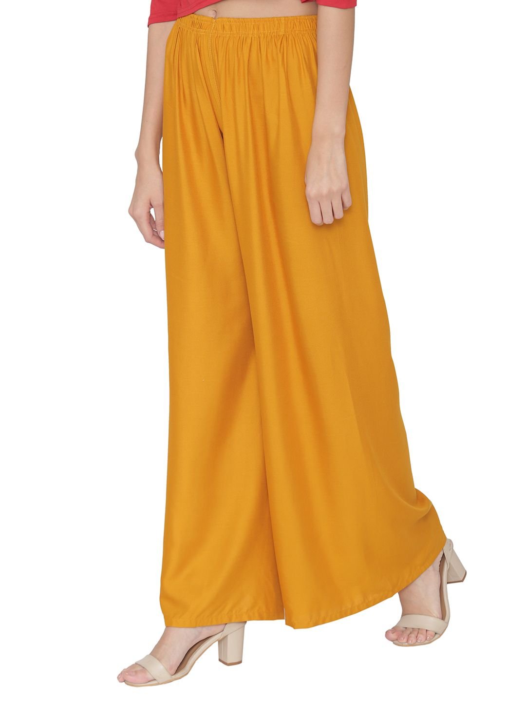 N-Gal Rayon Women's Wide Leg Elastic Waist Band Breathable Plain Palazzo Pant_Mustard