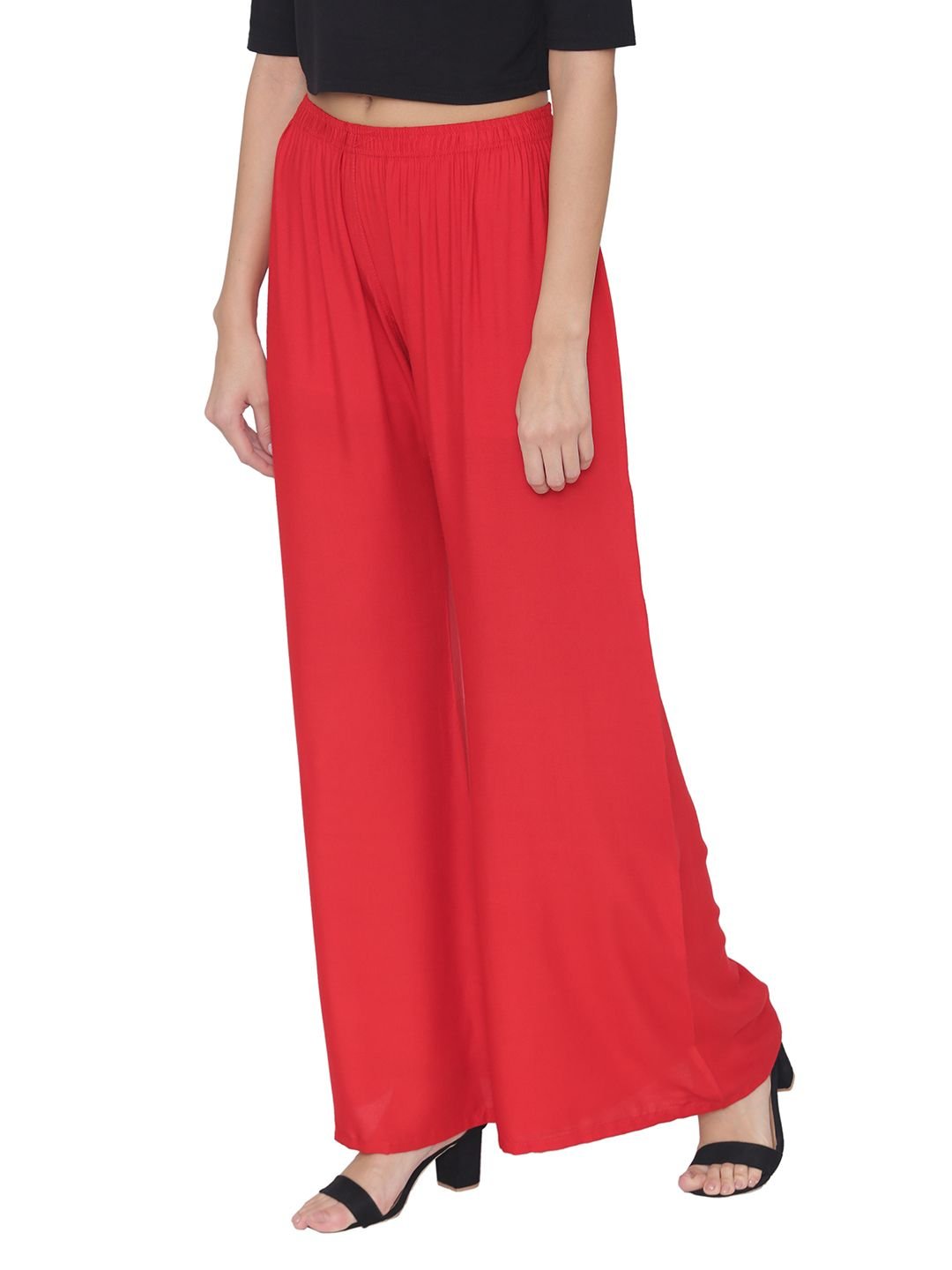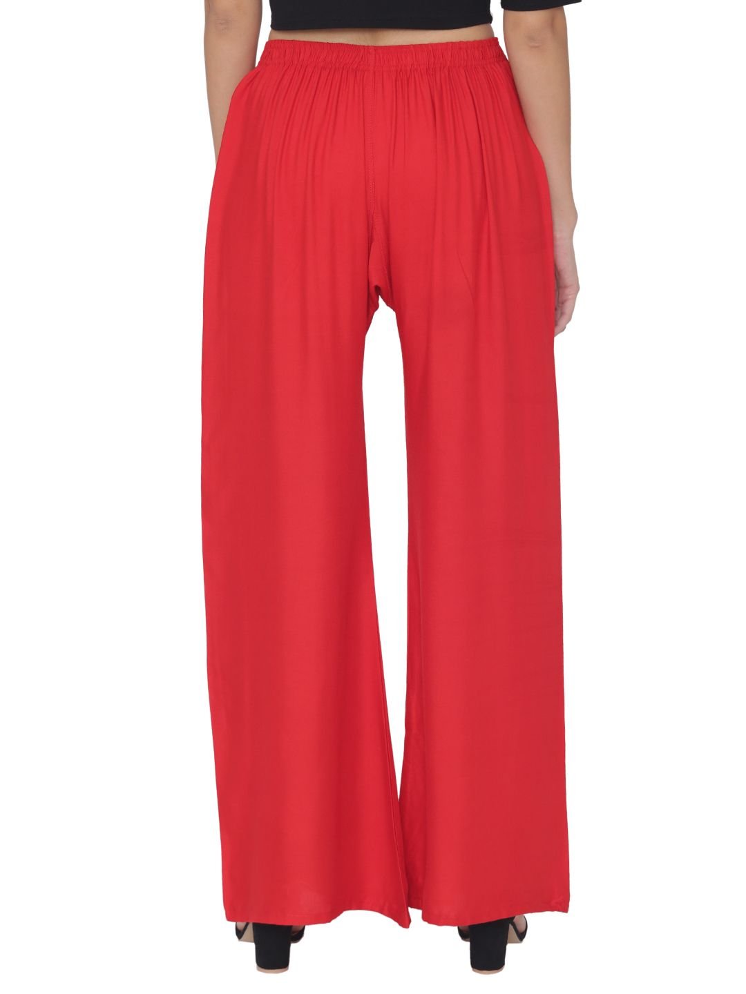 N-Gal Rayon Women's Wide Leg Elastic Waist Band Breathable Plain Palazzo Pant_Red