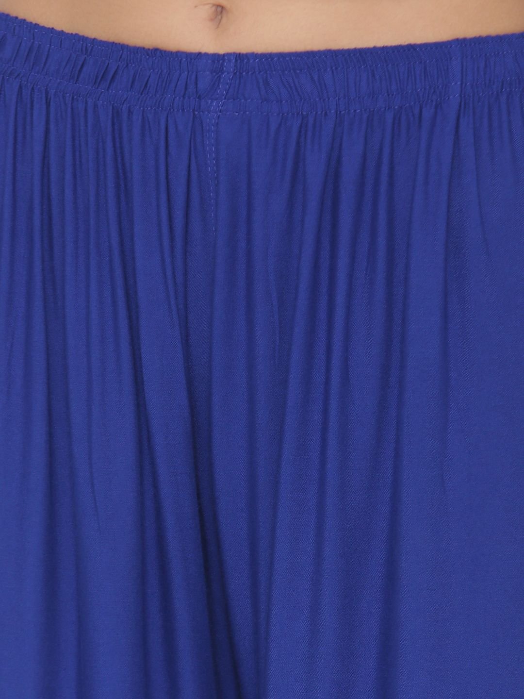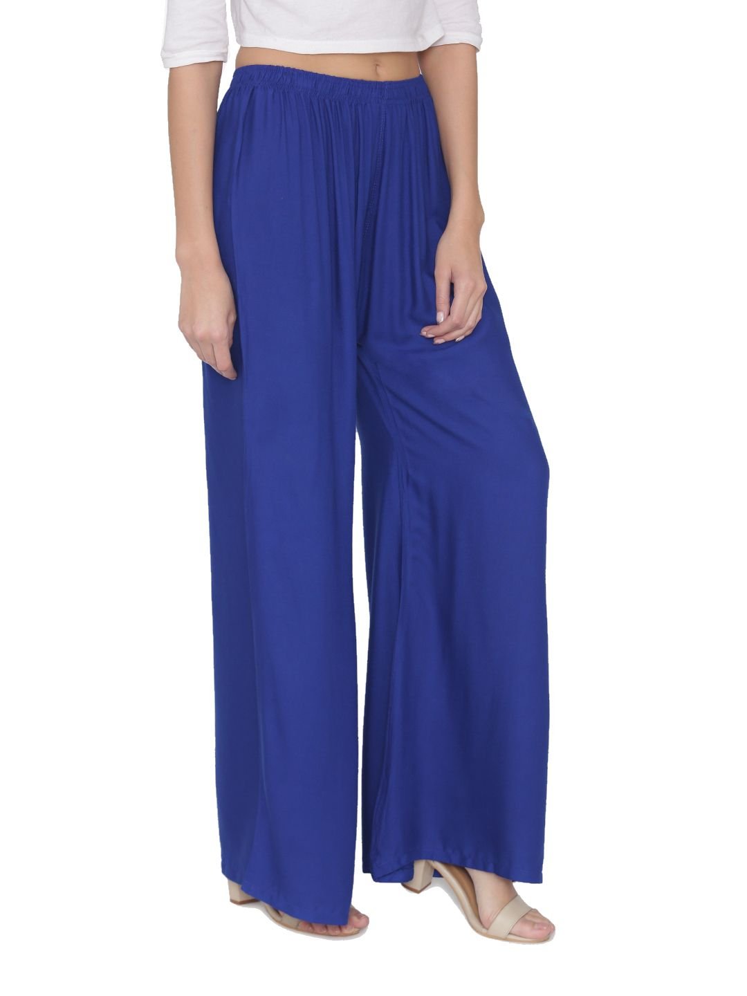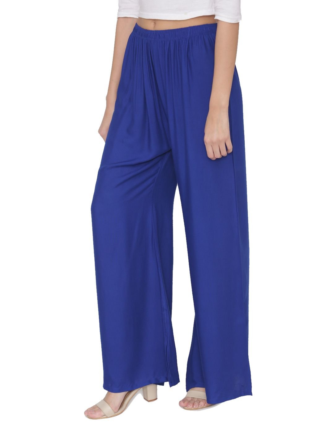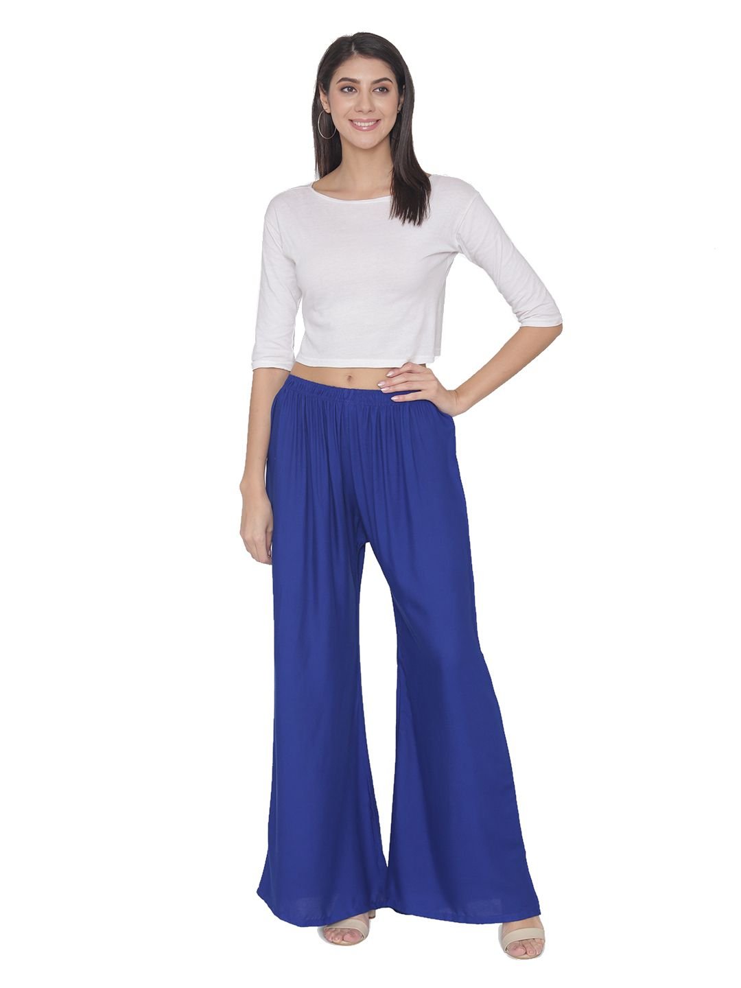 N-Gal Rayon Women's Wide Leg Elastic Waist Band Breathable Plain Palazzo Pant_RoyalBlue