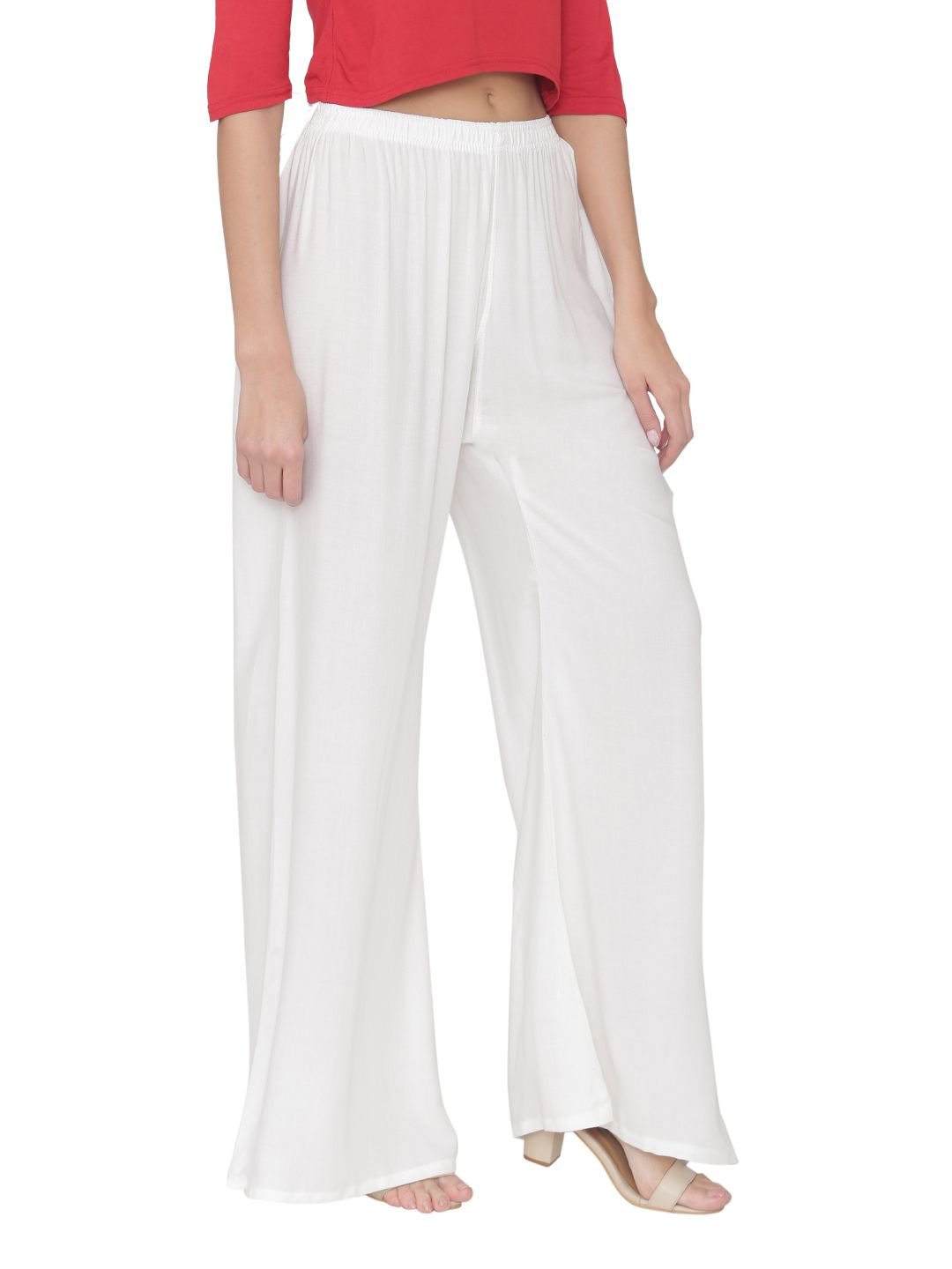 N-Gal Rayon Women's Wide Leg Elastic Waist Band Breathable Plain Palazzo Pant_White