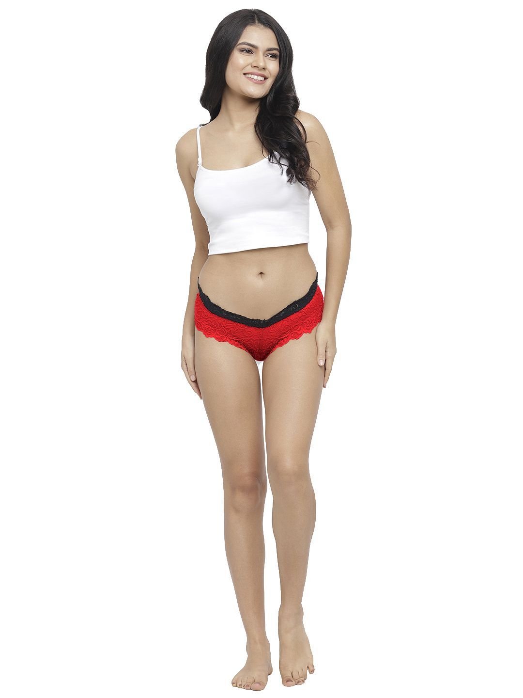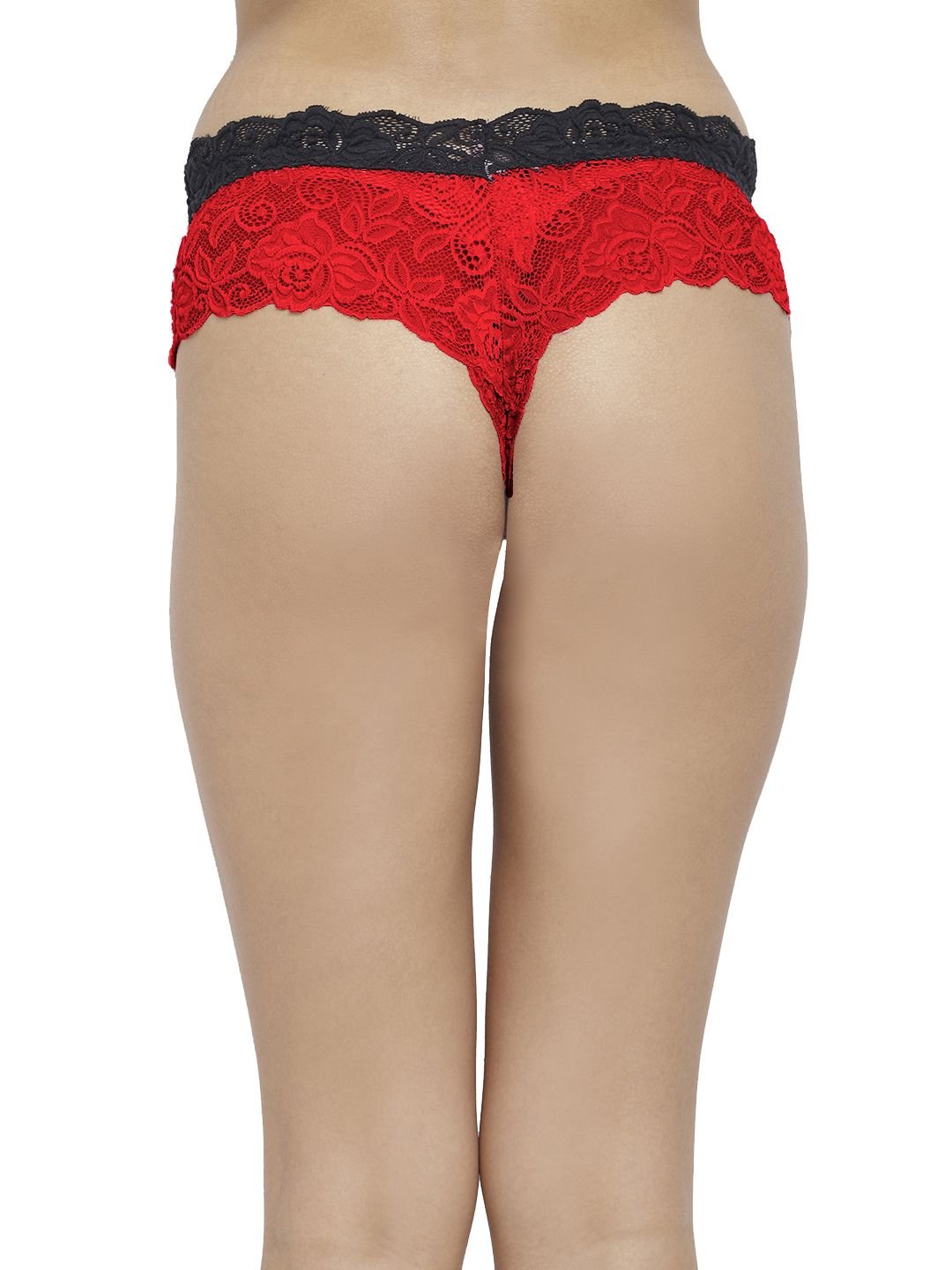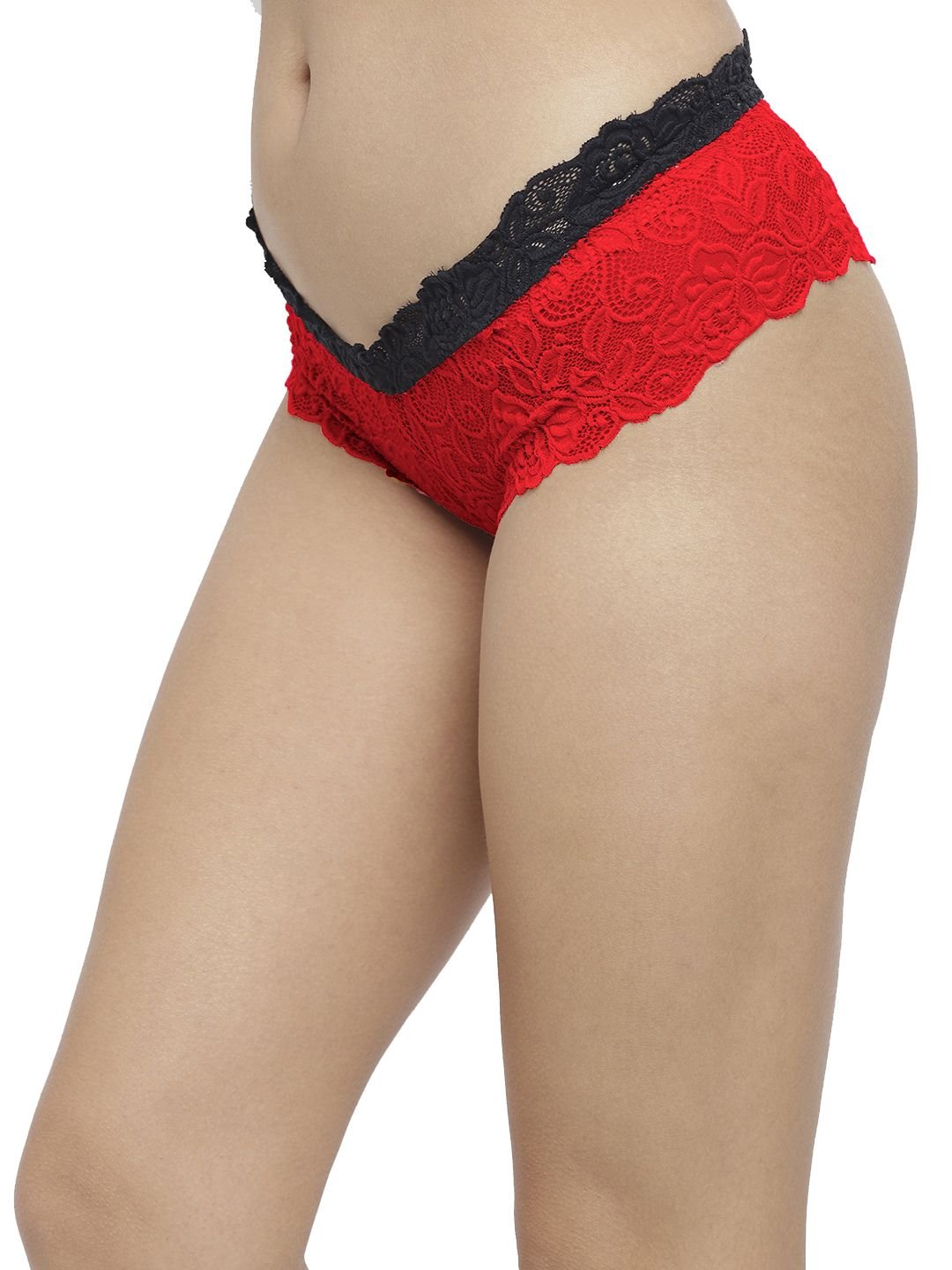 N-Gal Women's Cheeky Lace Mid Waist Erotic Floral Underwear Lingerie Brief Panty _Red