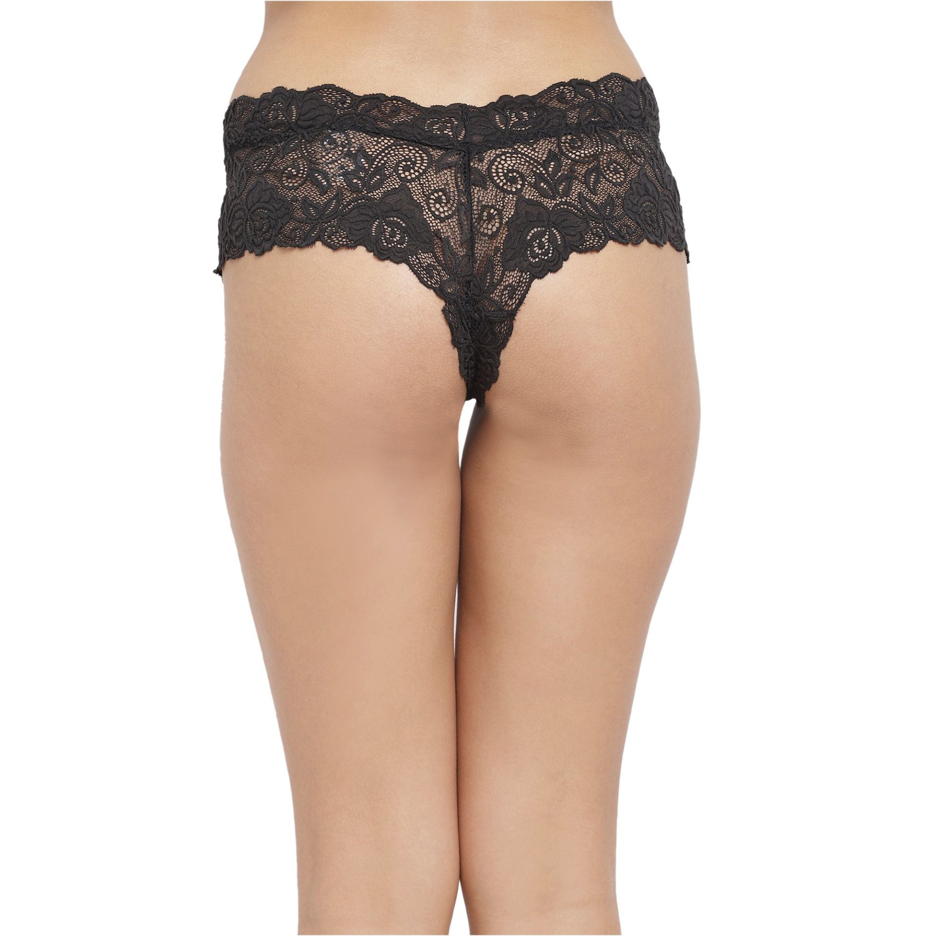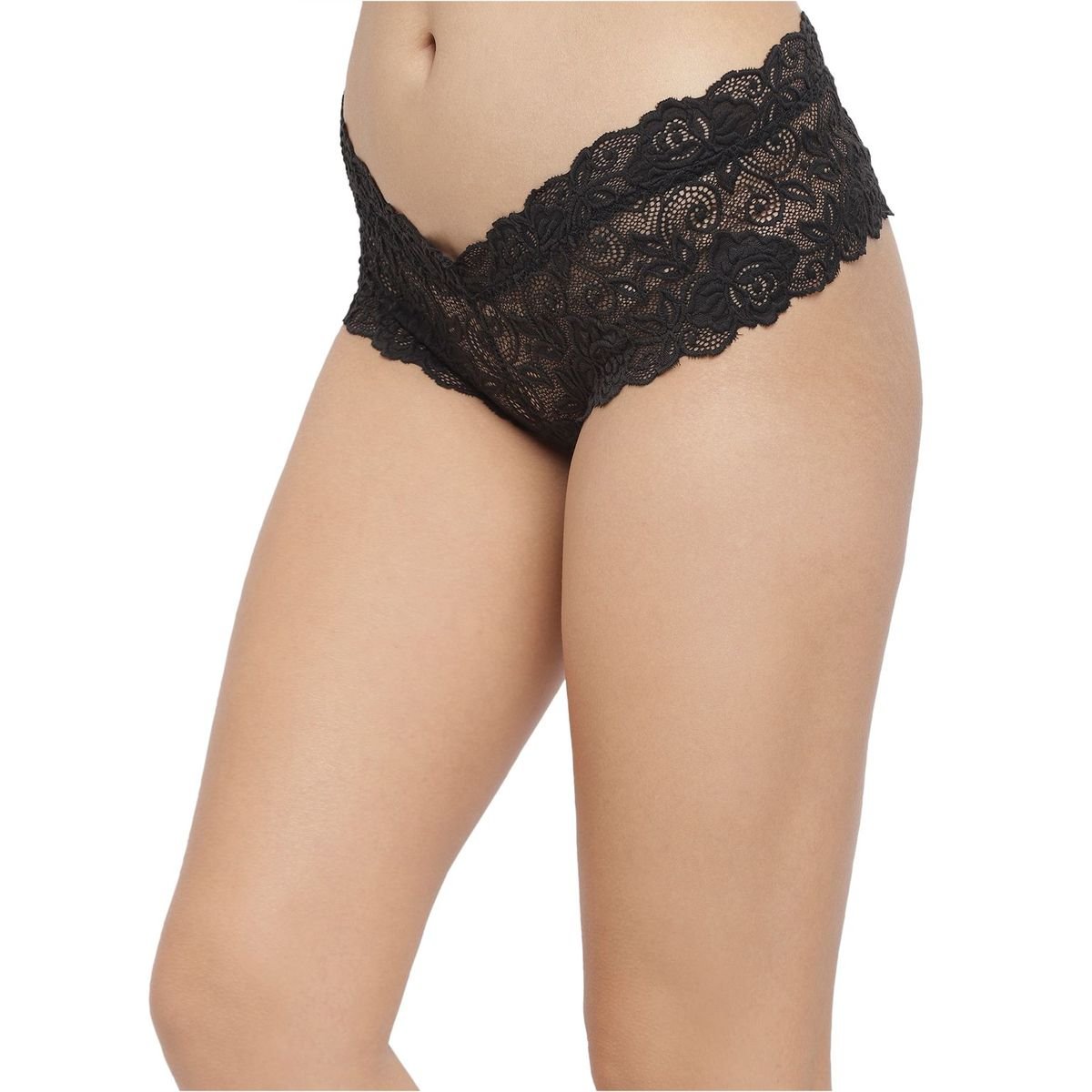 N-Gal Women's Cheeky Lace Mid Waist Floral Underwear Lingerie Brief Panty _Black