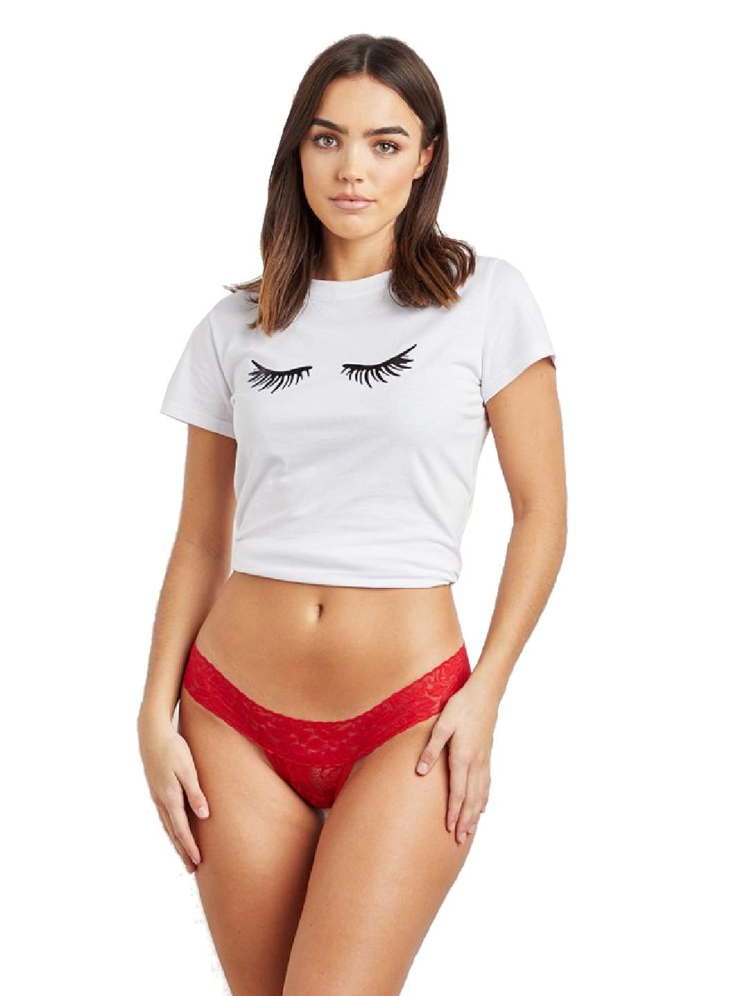N-Gal Women's Cheeky Lace Mid Waist T Back Underwear Lingerie Brief Thong Panty_Red