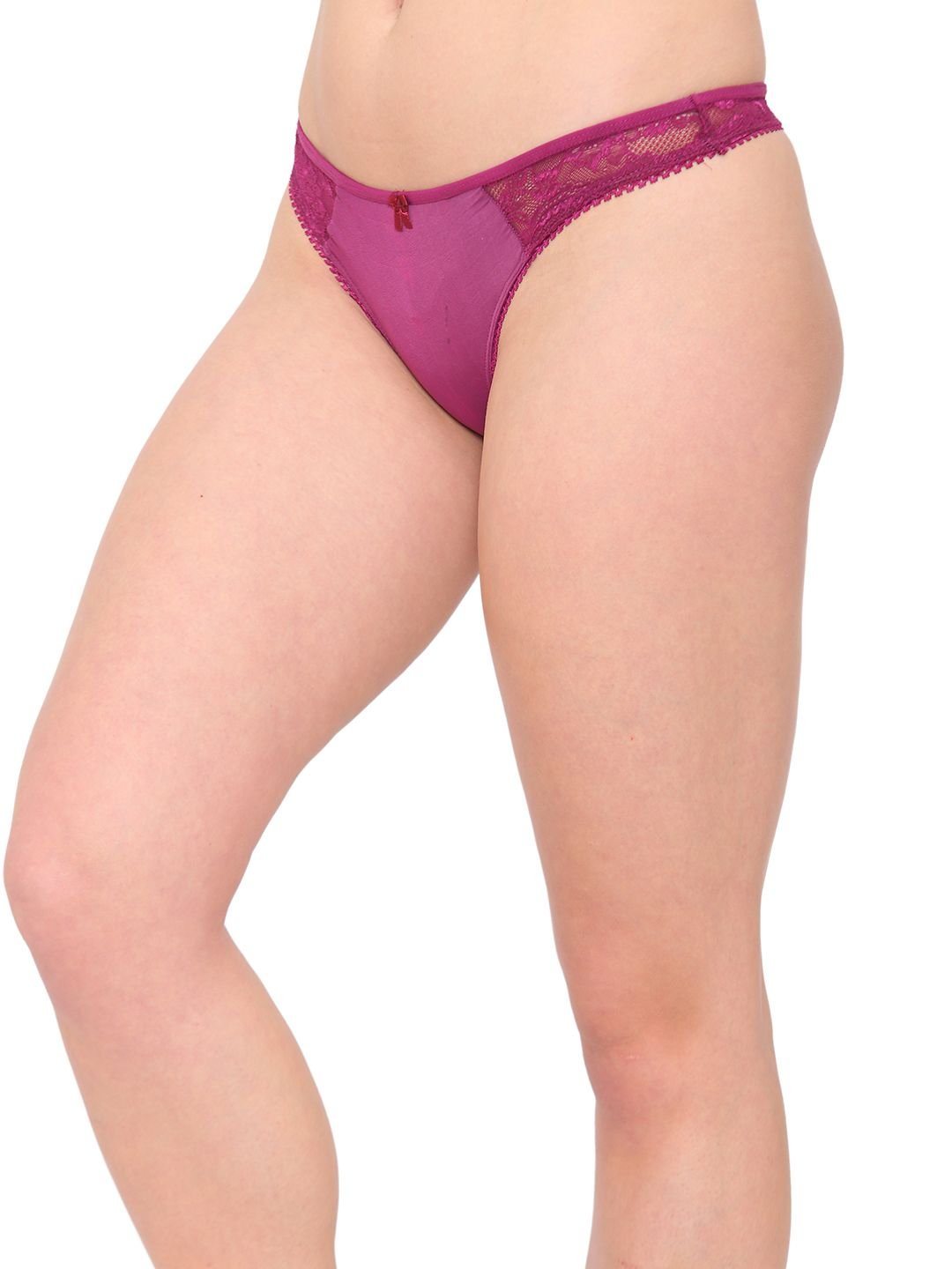 N-Gal Women's Delicate Both Side Lace Detail Mid Waist Underwear Lingerie Thong Brief Panty_Purple