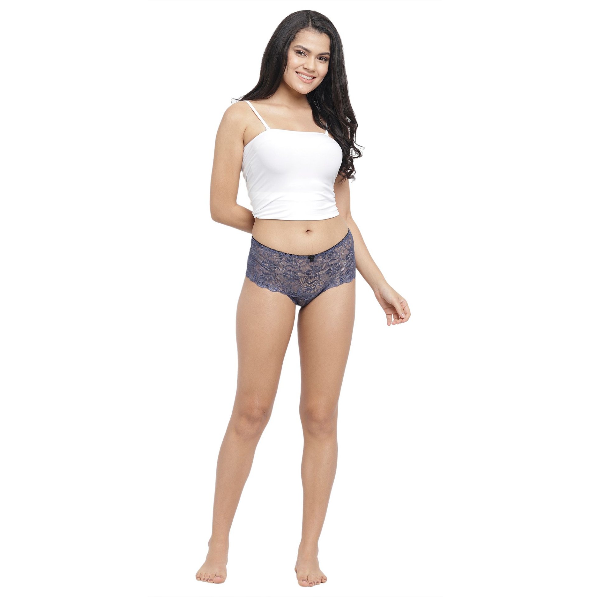 N-Gal Women's Erotic Lace See Through Mid Waist Underwear Lingerie Knickers Brief Panty_NavyBlue