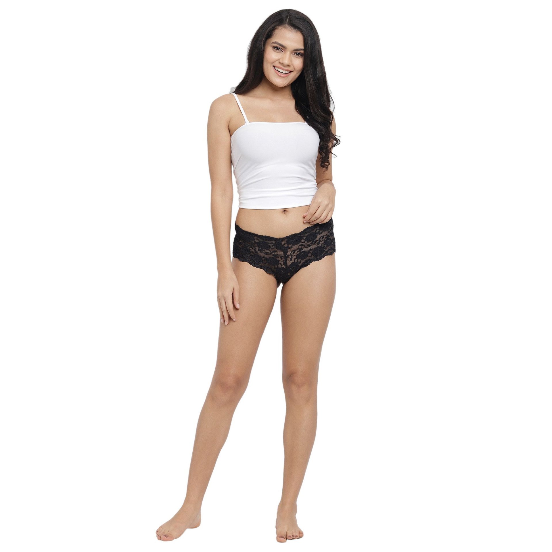 N-Gal Women's Floral Lace Mid Waist Criss Cross Back Underwear Lingerie Brief Panty _Black
