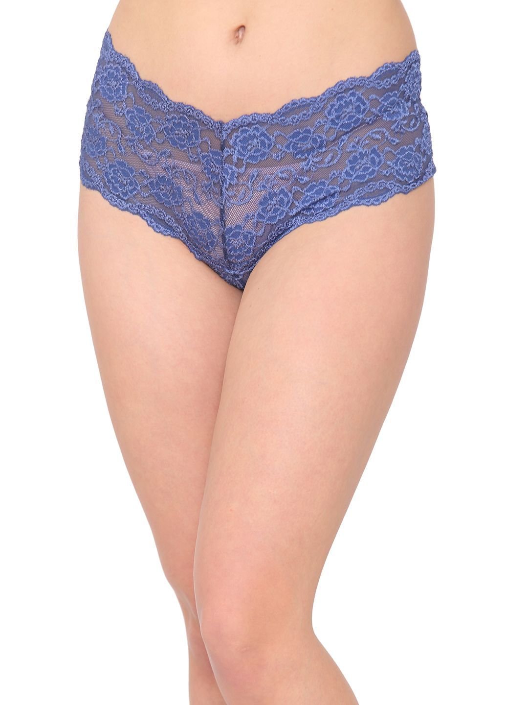 N-Gal Women's Floral Lace Mid Waist Criss Cross Back Underwear Lingerie Brief Panty _NavyBlue