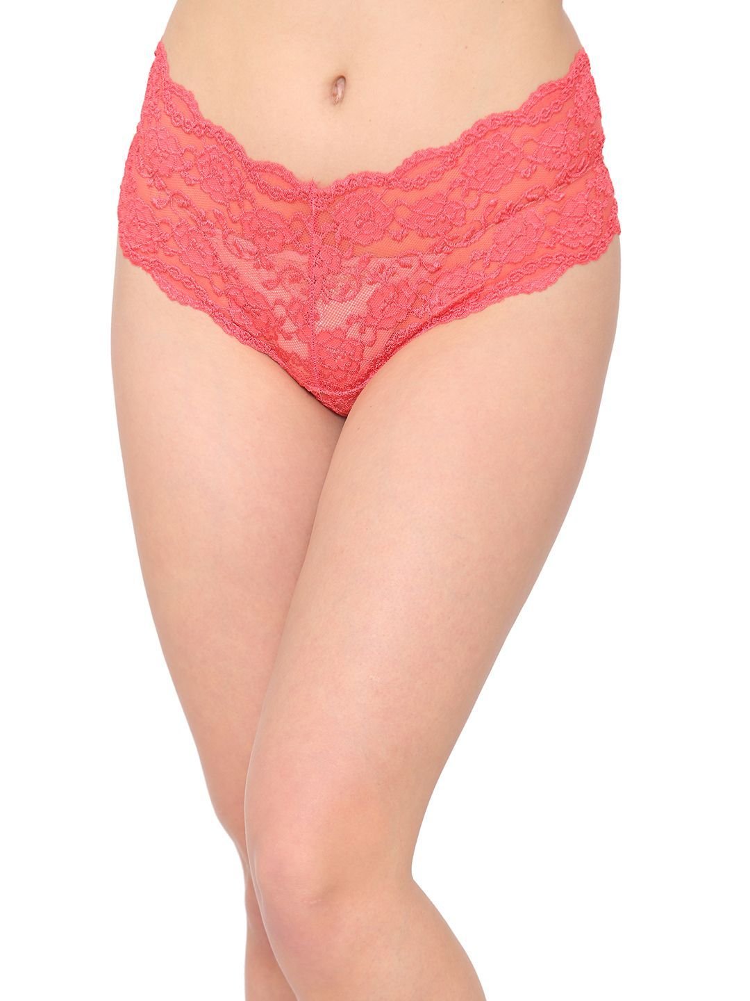 N-Gal Women's Floral Lace Mid Waist Criss Cross Back Underwear Lingerie Brief Panty _Pink