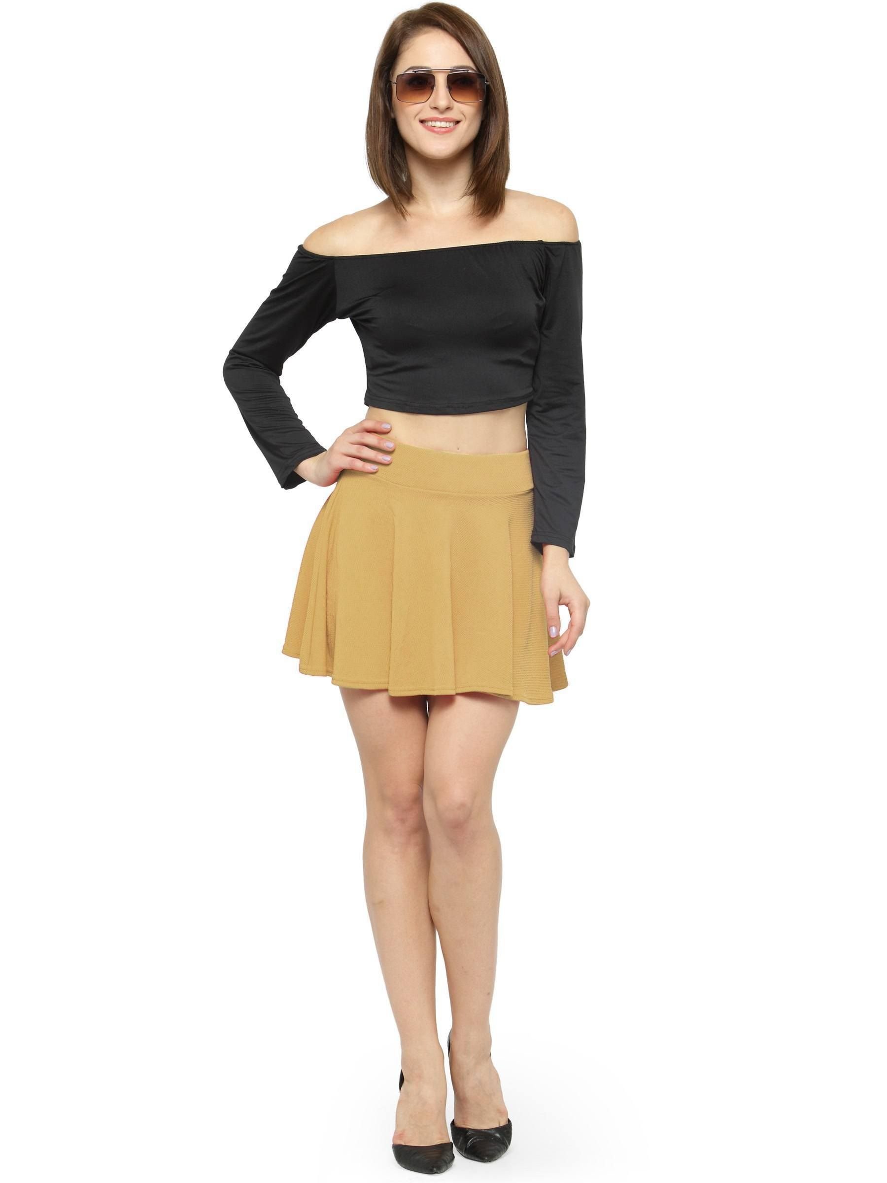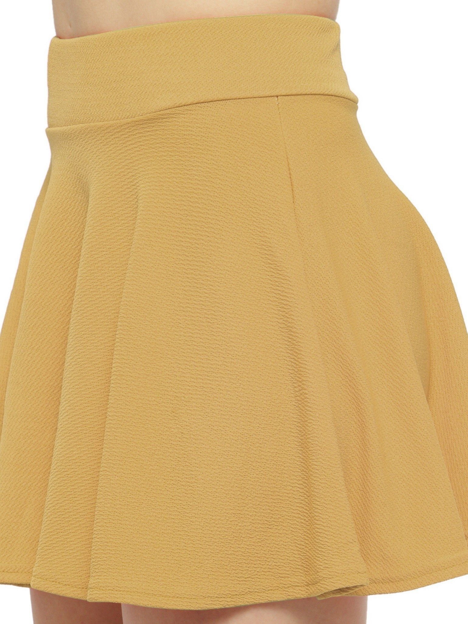 N-Gal Women's Polyester Lycra High Waist Flared Knit Skater Short Mini Skirt _Beige