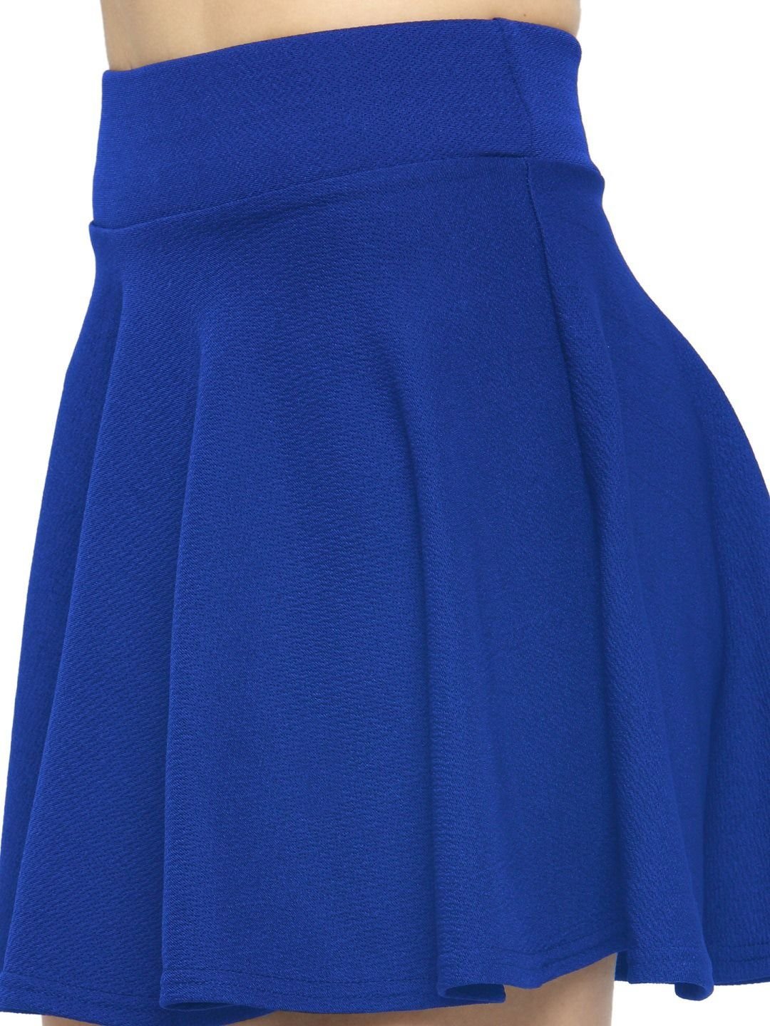 N-Gal Women's Polyester Lycra High Waist Flared Knit Skater Short Mini Skirt _RoyalBlue