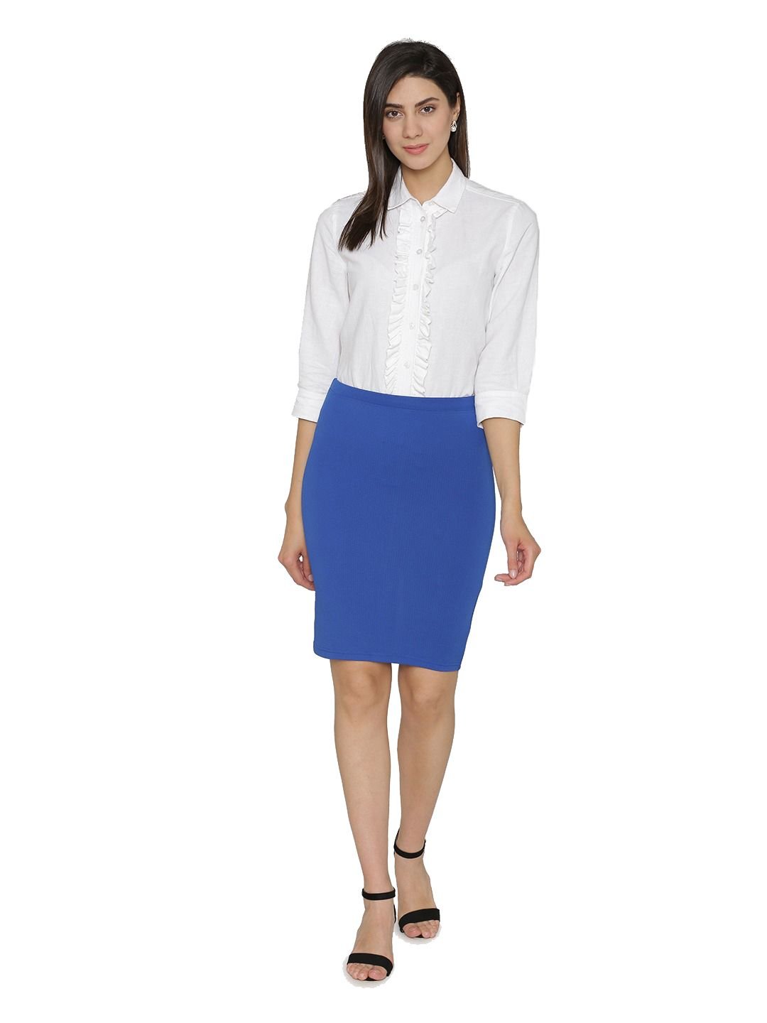 N-Gal Women's Polyester Lycra High Waist Versatile Straight Knee Length Pencil Skirt_RoyalBlue