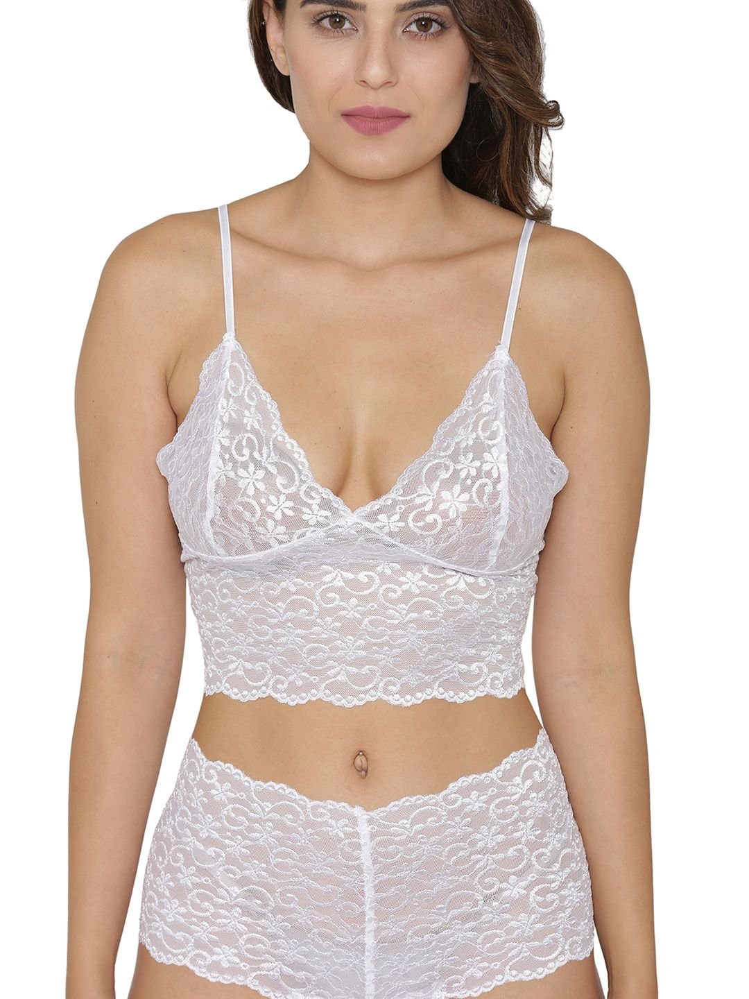 N-Gal Women's Polyester Spandex Floral Lace Top & High Waist Panty Lingerie Set Nightwear_White