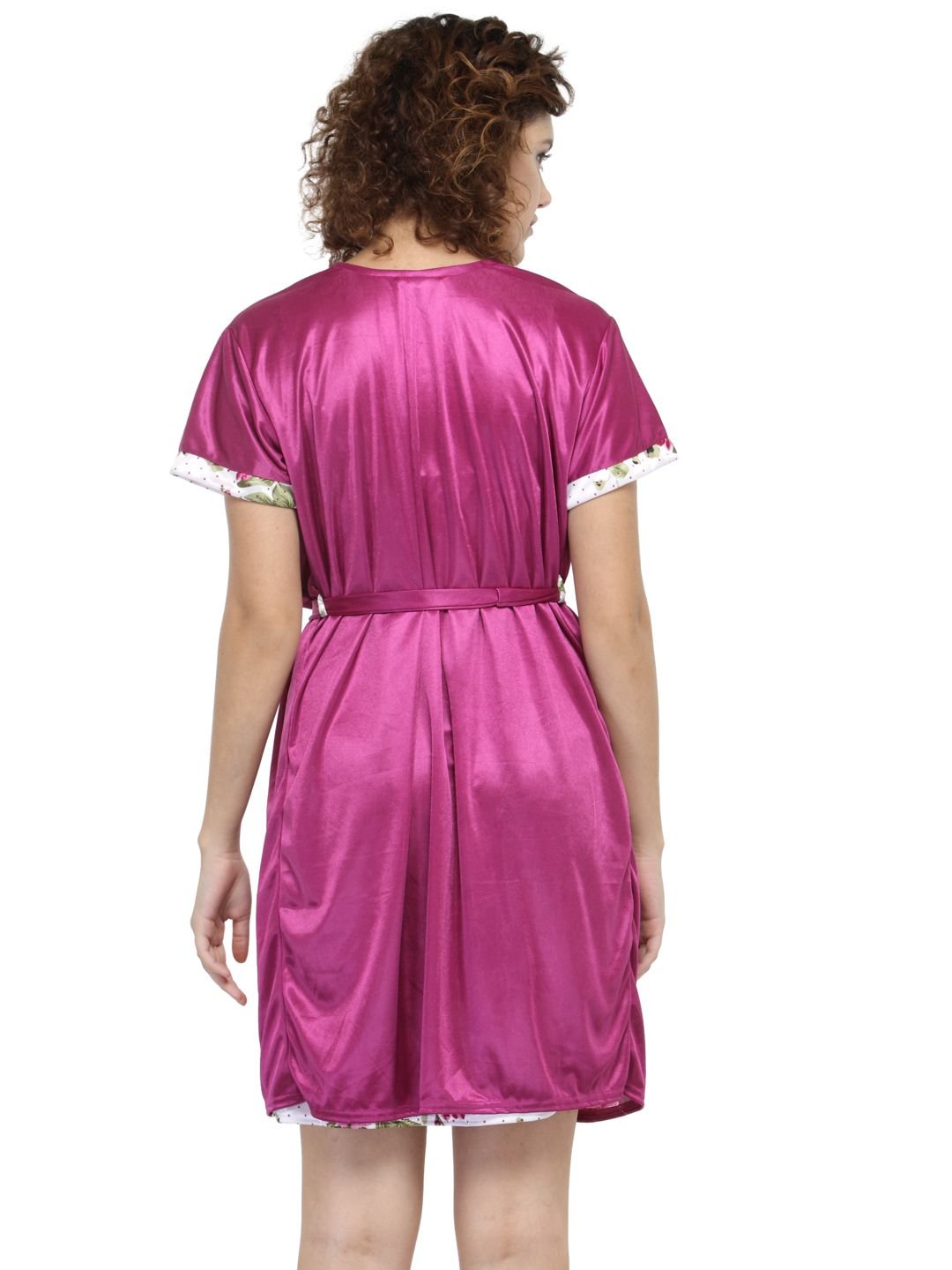 N-Gal Women's Satin Floral Pattern Short Nighty Robe Nightwear_Magenta
