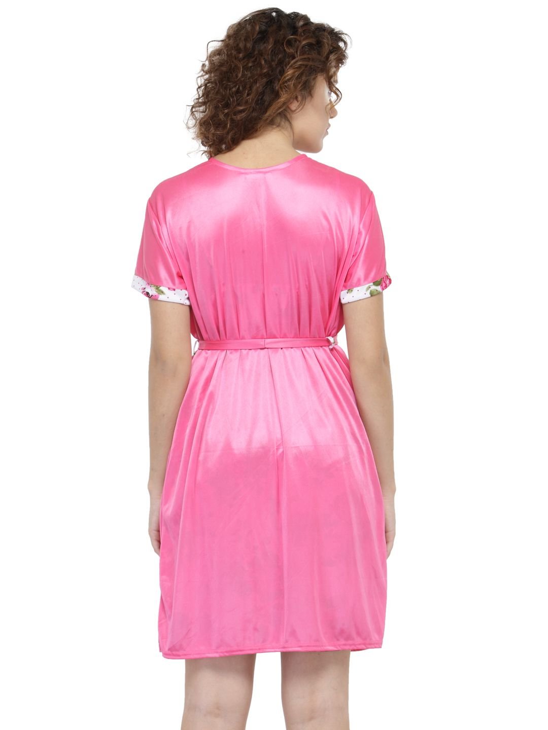 N-Gal Women's Satin Floral Pattern Short Nighty Robe Nightwear_Pink