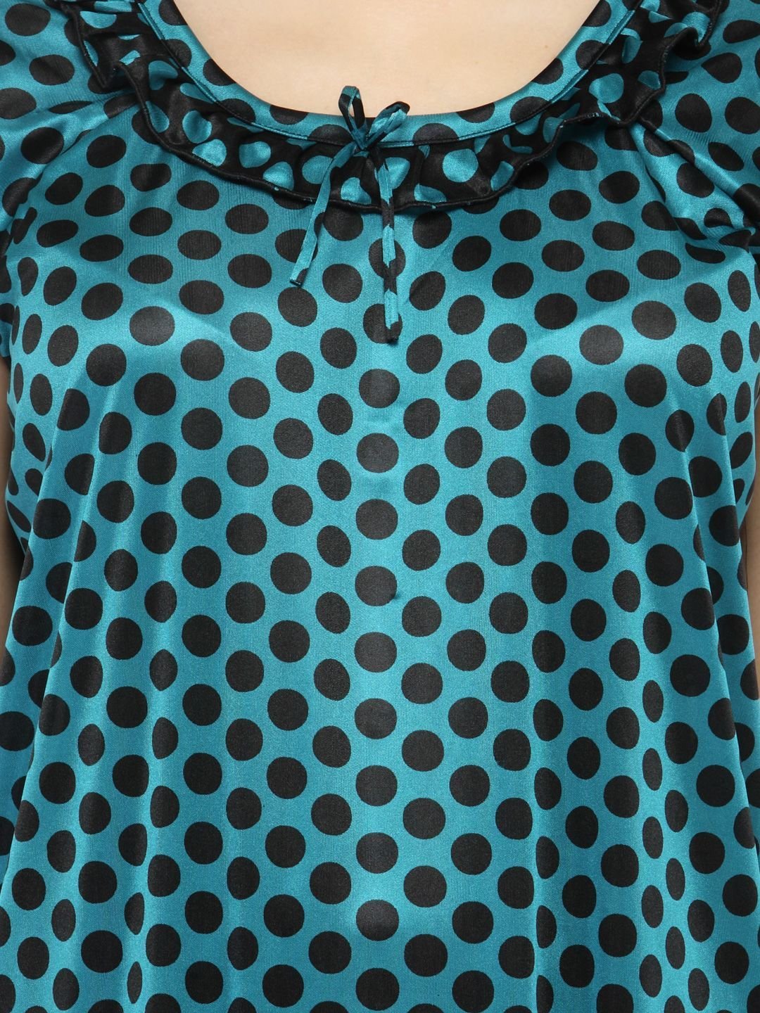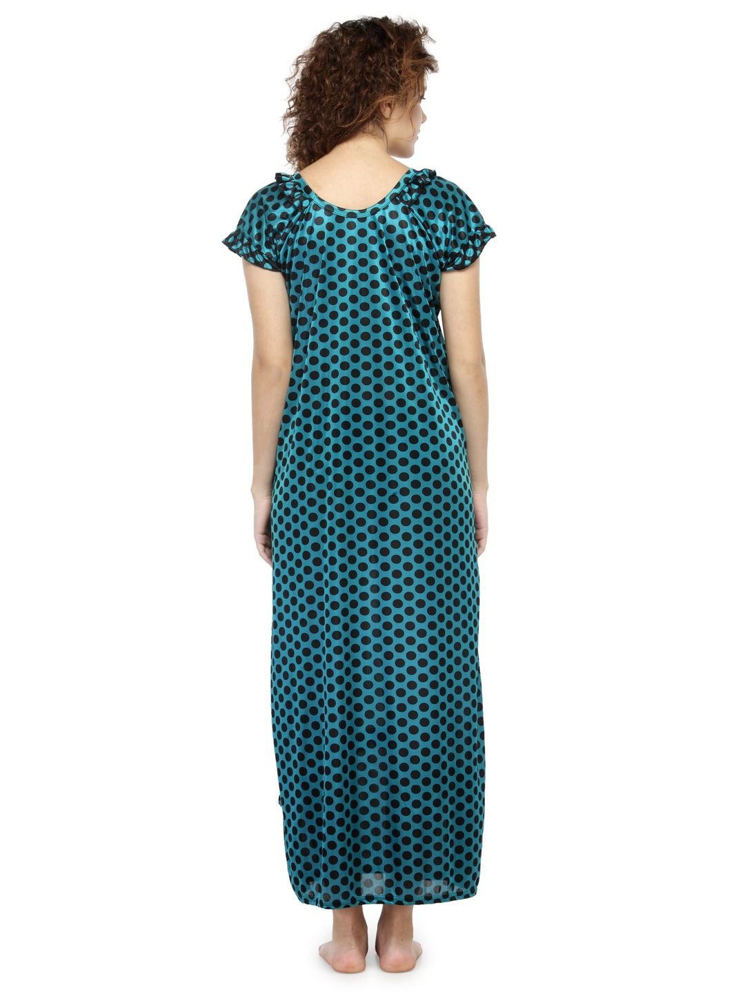 N-Gal Women's Satin Half Sleeves Polka Dot Nighty Night Dress Nightwear_Green