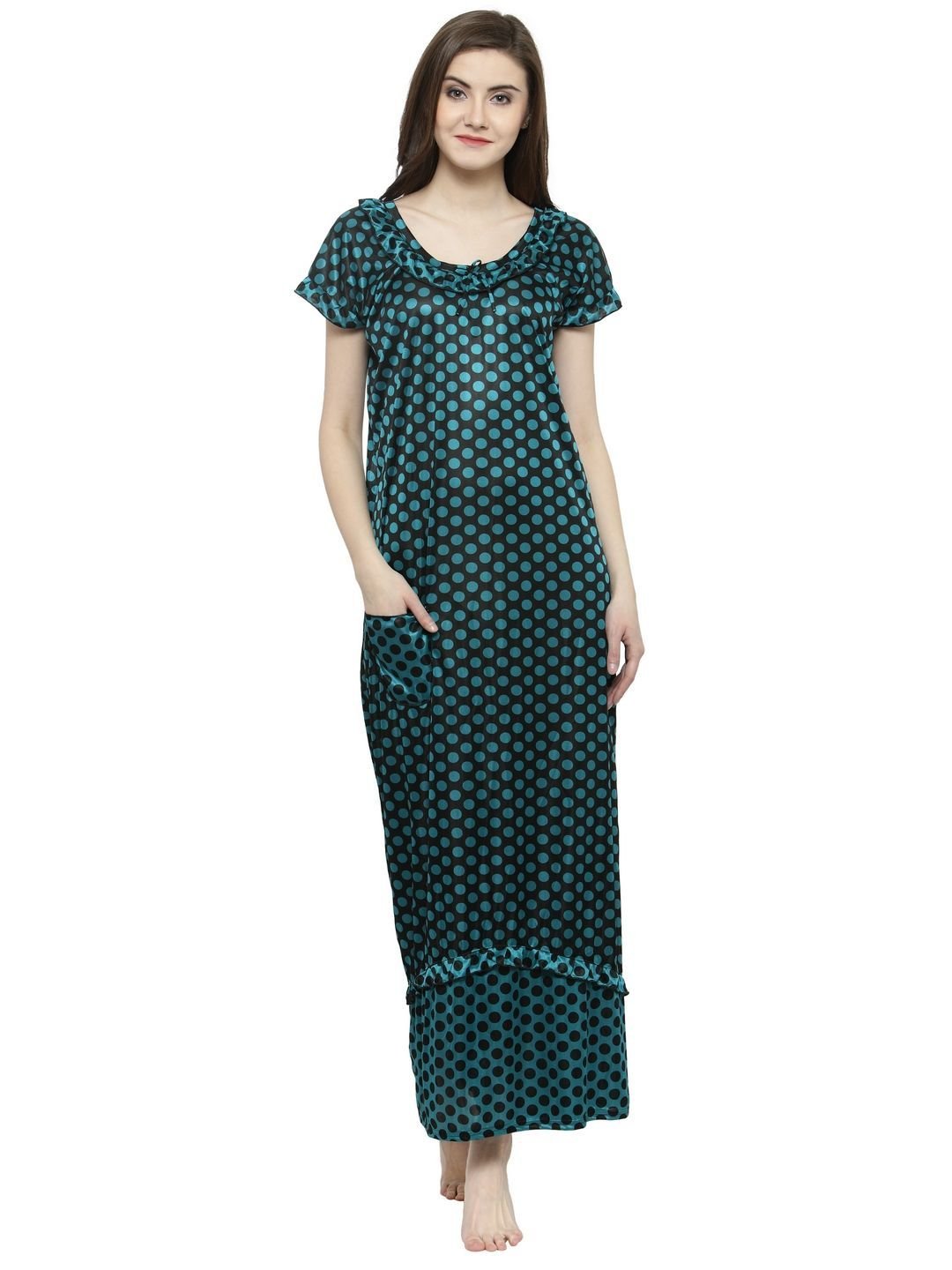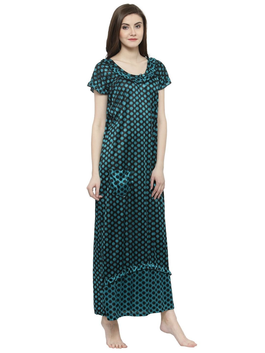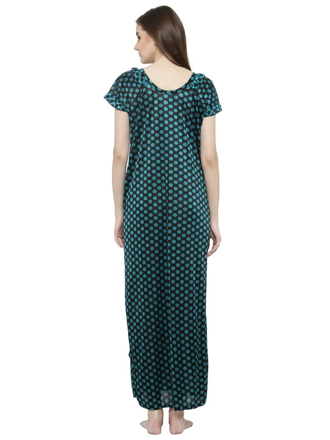 N-Gal Women's Satin Half Sleeves Polka Dot Nighty Night Dress Nightwear_Green