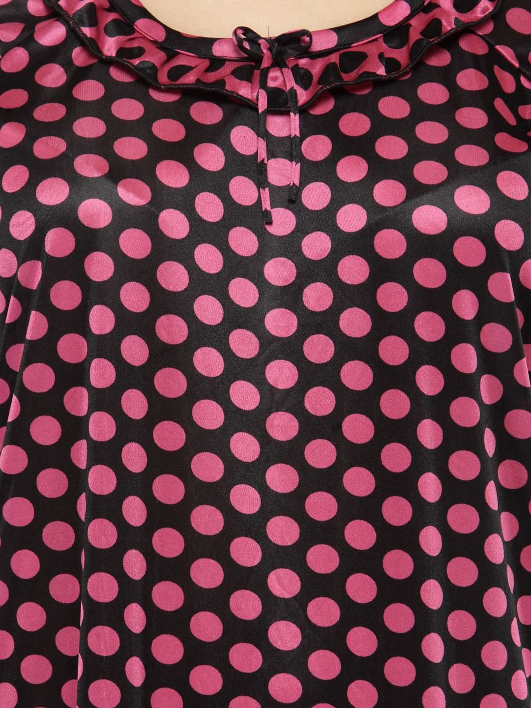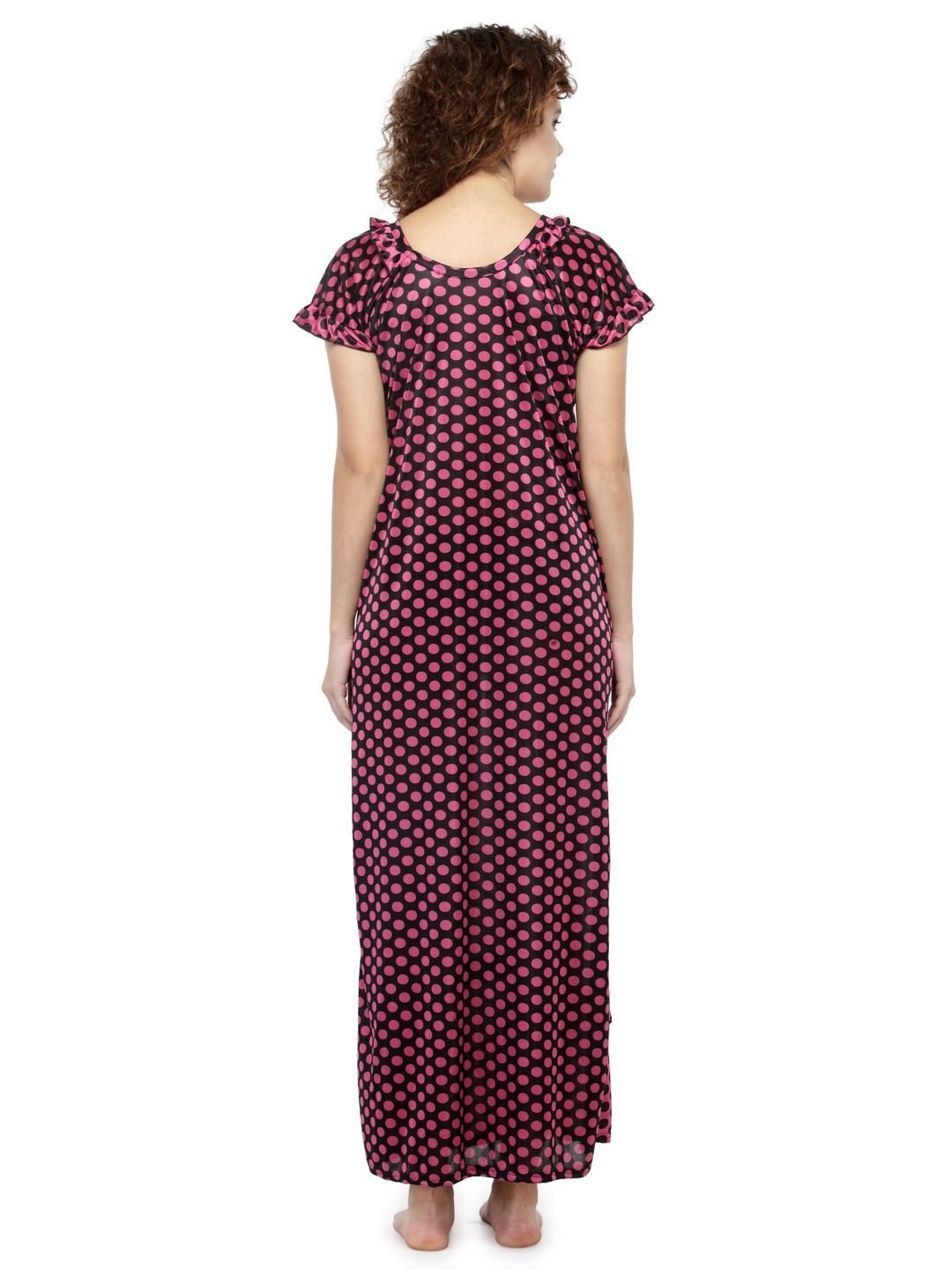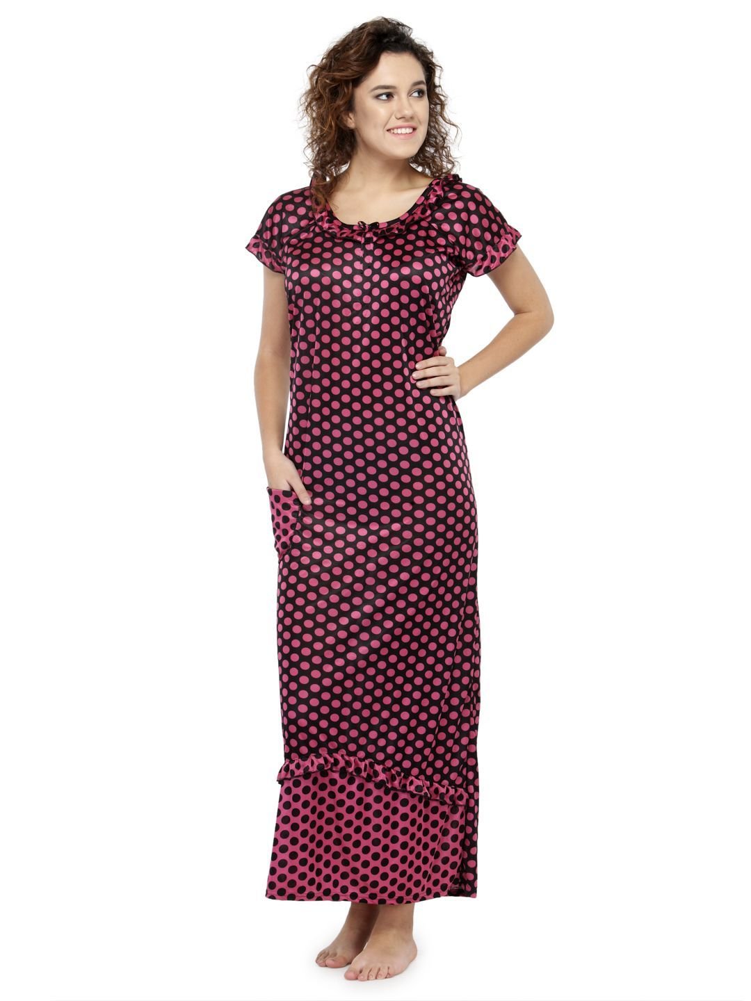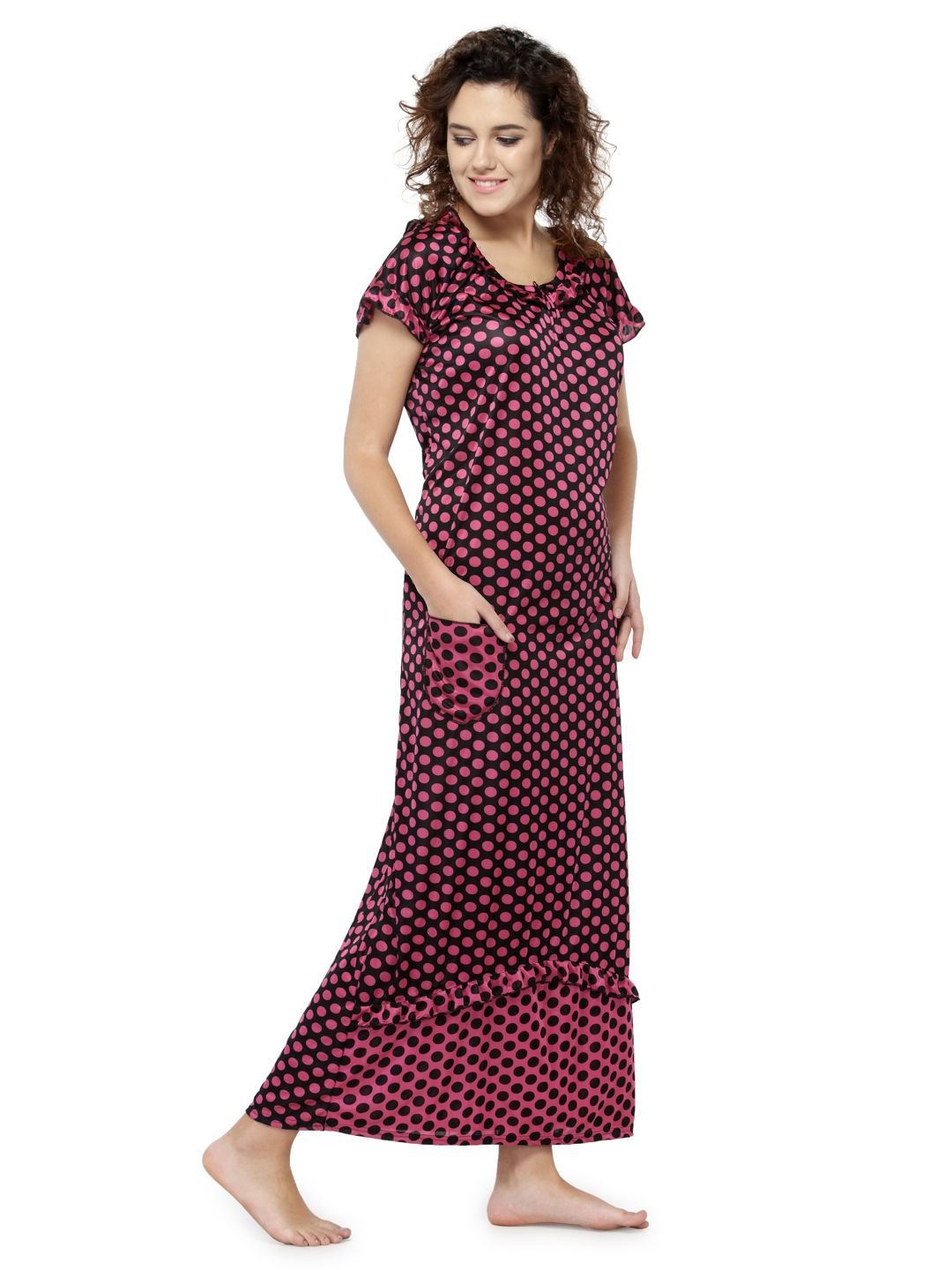 Designed to keep you comfortable while sleeping, this night dress is a must-have. With short sleeves and a soft material, it is sure to become your choicest. This Satin nighty has a frilled scoop neckline with laced details. This Satin nighty is a combination of comfort and luxury . This nightwear is an ideal choice for you, especially if you seek relaxation at night.