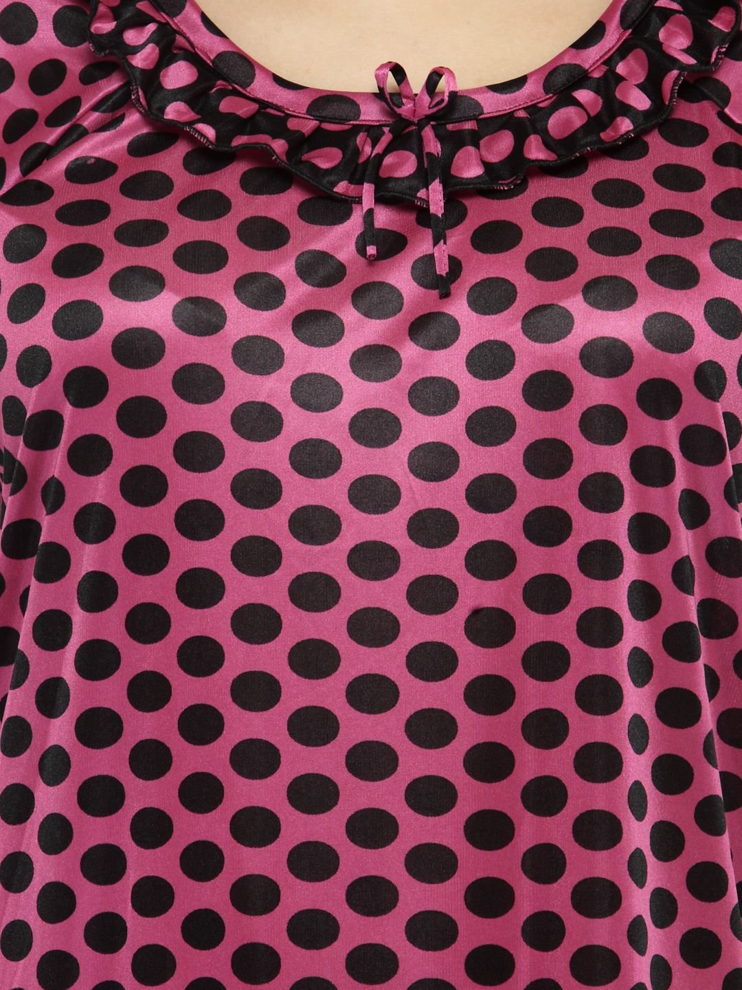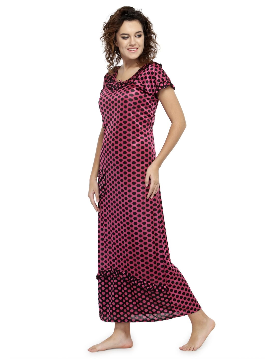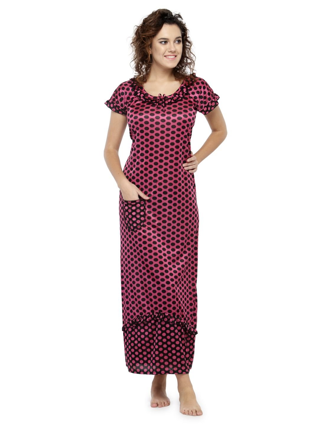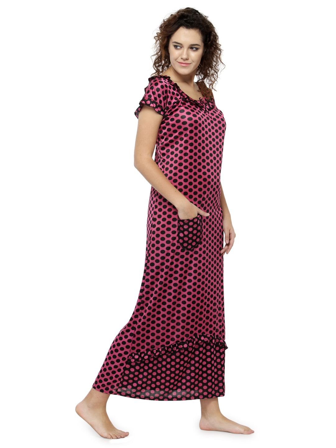 N-Gal Women's Satin Half Sleeves Polka Dot Nighty Night Dress Nightwear_Rose Red