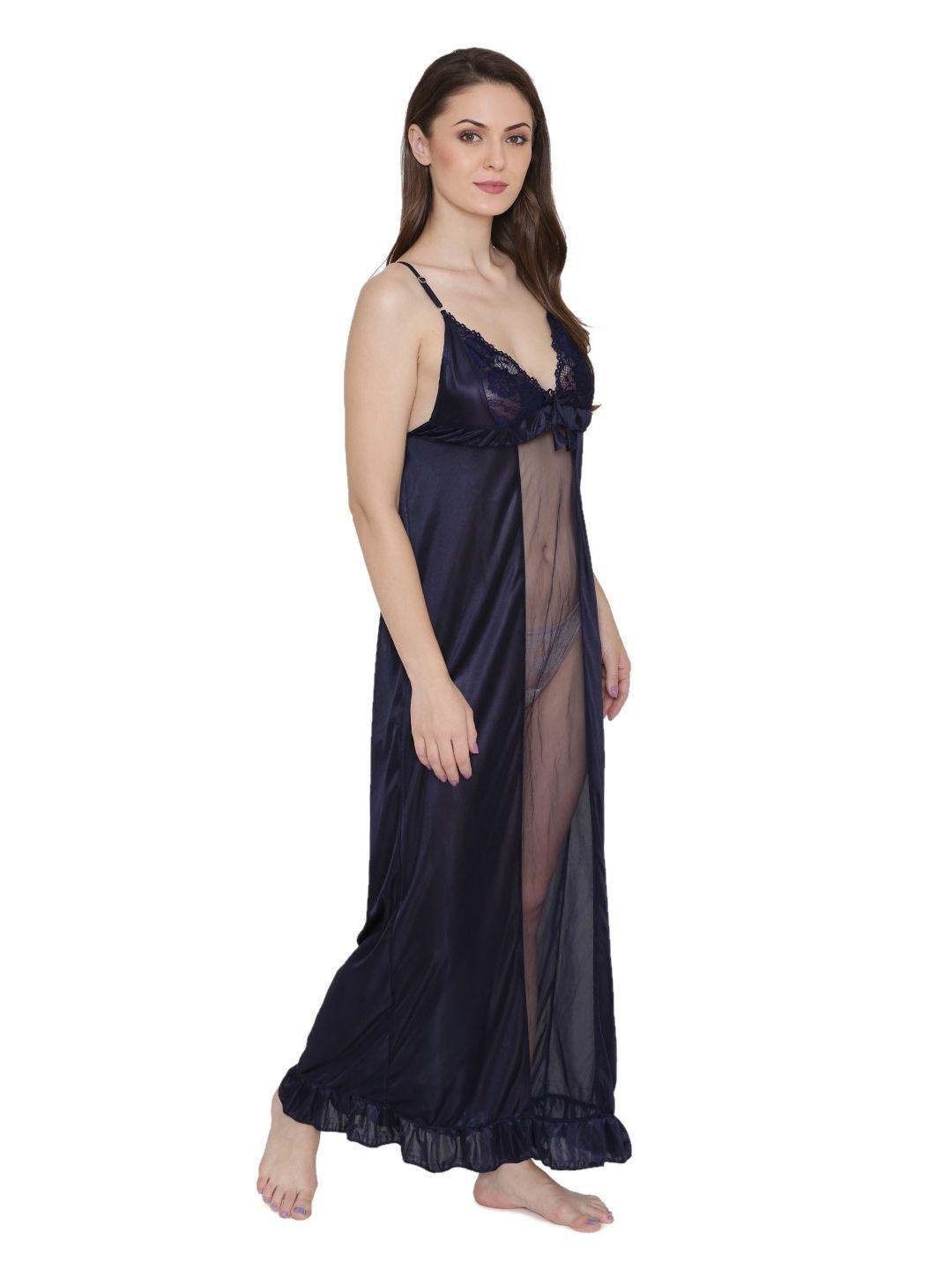 Feel stylish by wearing this Pink color Lace Nighty for women from N-Gal. It Has frills at bottom & Chest with adjustable shoulder straps & elesticated details at the back and Sweetheart Neck. Made from soft & top quality Satin and power net in front which is transparent. Stitched in Regular Fitting gives a soft feel to your skin and is comfortable to wear all night long.