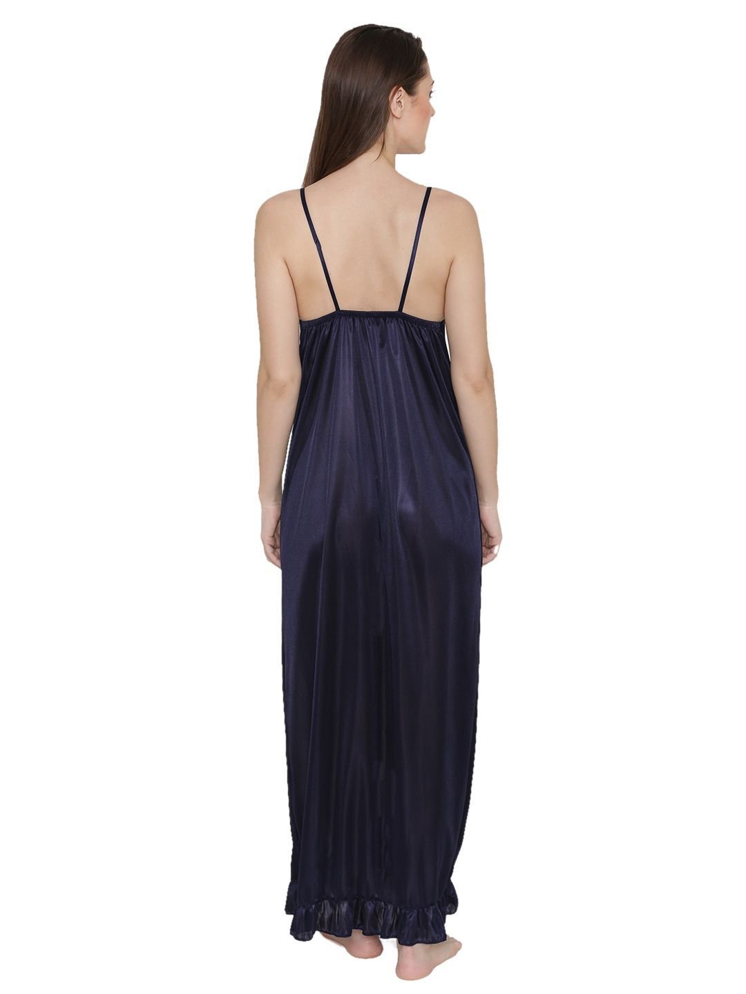 N-Gal Women's Satin Lace Deep Neck Ruffle Edge Nighty Night Dress Nightwear_NavyBlue