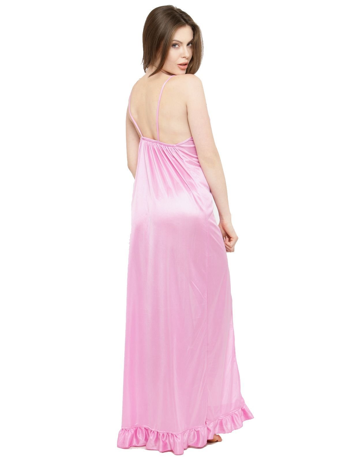 Feel stylish by wearing this Pink color Lace Nighty for women from N-Gal. It Has frills at bottom & Chest with adjustable shoulder straps & elesticated details at the back and Sweetheart Neck. Made from soft & top quality Satin and power net in front which is transparent. Stitched in Regular Fitting gives a soft feel to your skin and is comfortable to wear all night long.