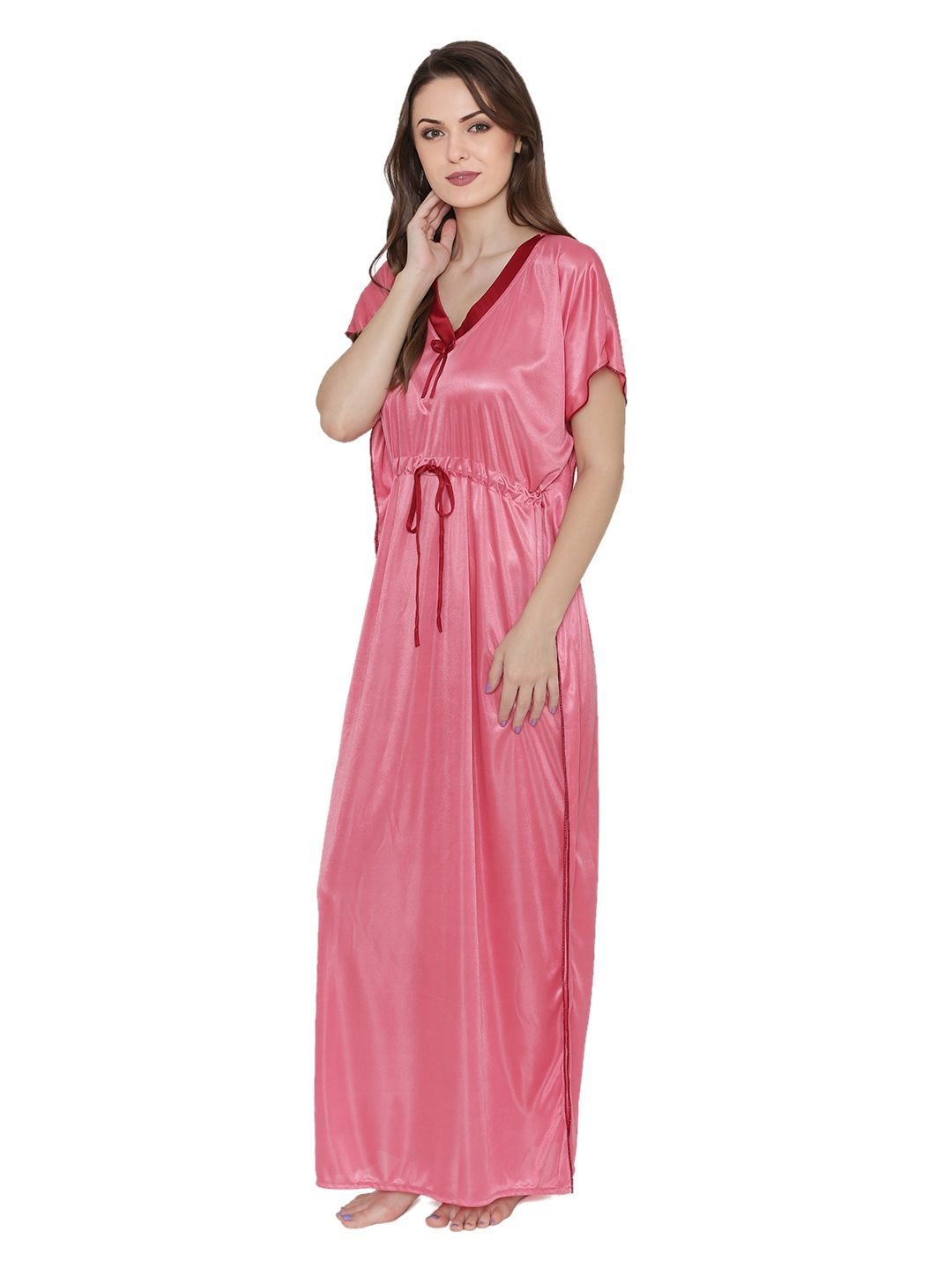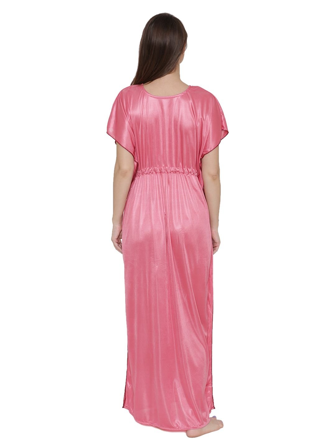 N-Gal Women's Satin Nighty Night Dress Nightwear with G,String_Pink