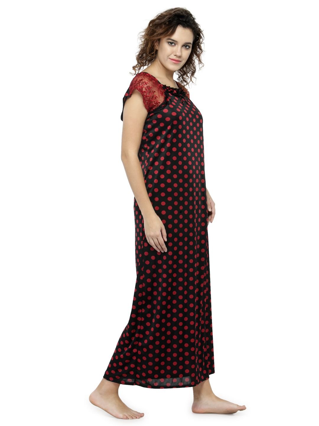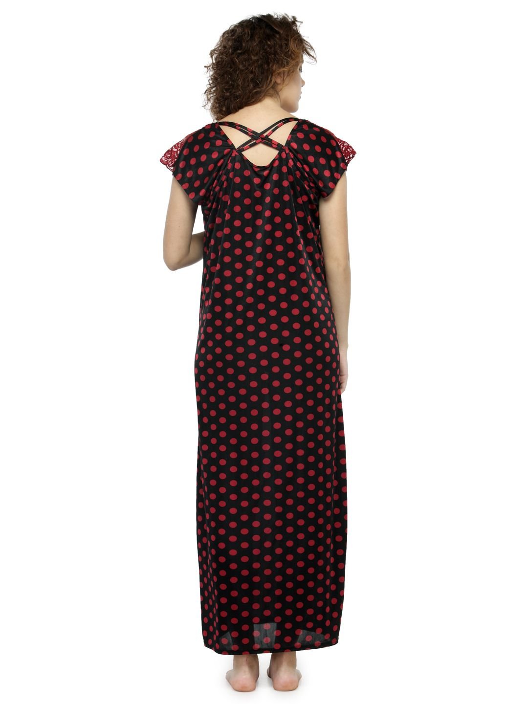 N-Gal Women's Satin Polka Dot Print Short Lace Sleeves Nighty Night Dress Nightwear_Maroon