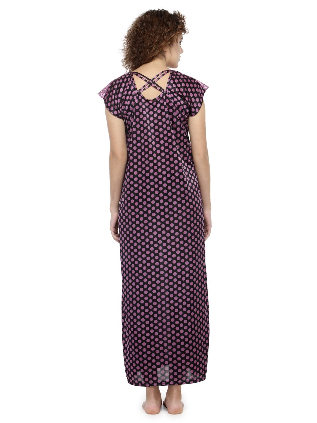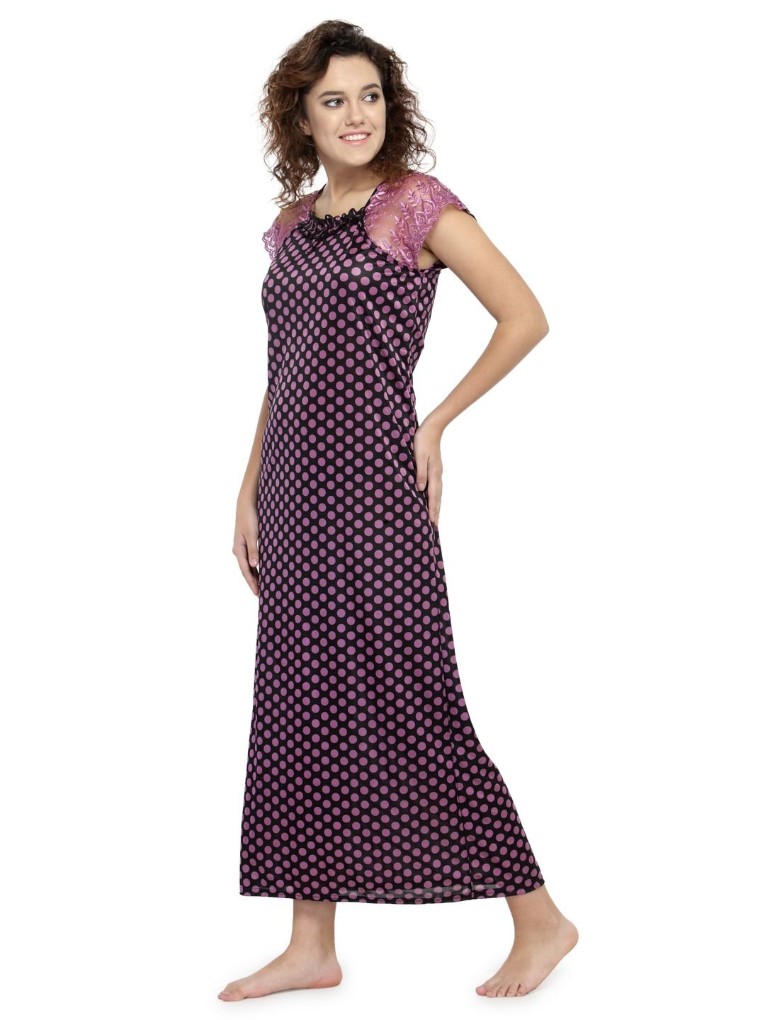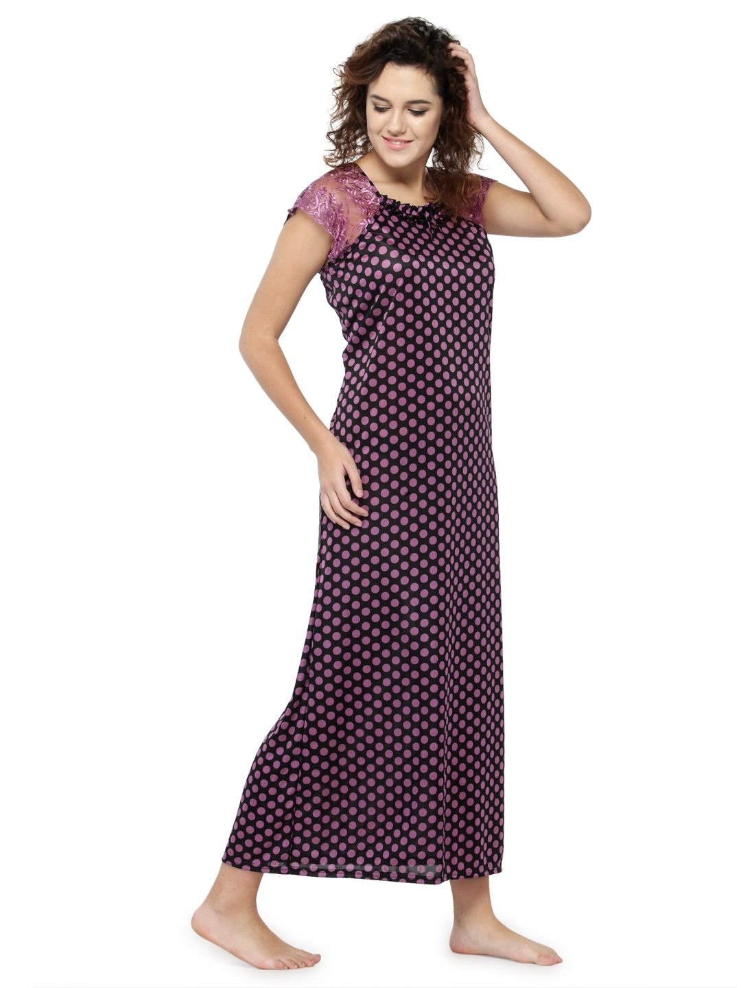 Designed to keep you comfortable while sleeping, this night dress is a must-have. With short sleeves and a soft material, it is sure to become your choicest.his Satin nighty has a frilled scoop neckline with laced details. This Satin nighty is a combination of comfort and luxury . This nightwear is an ideal choice for you, especially if you seek relaxation at night.