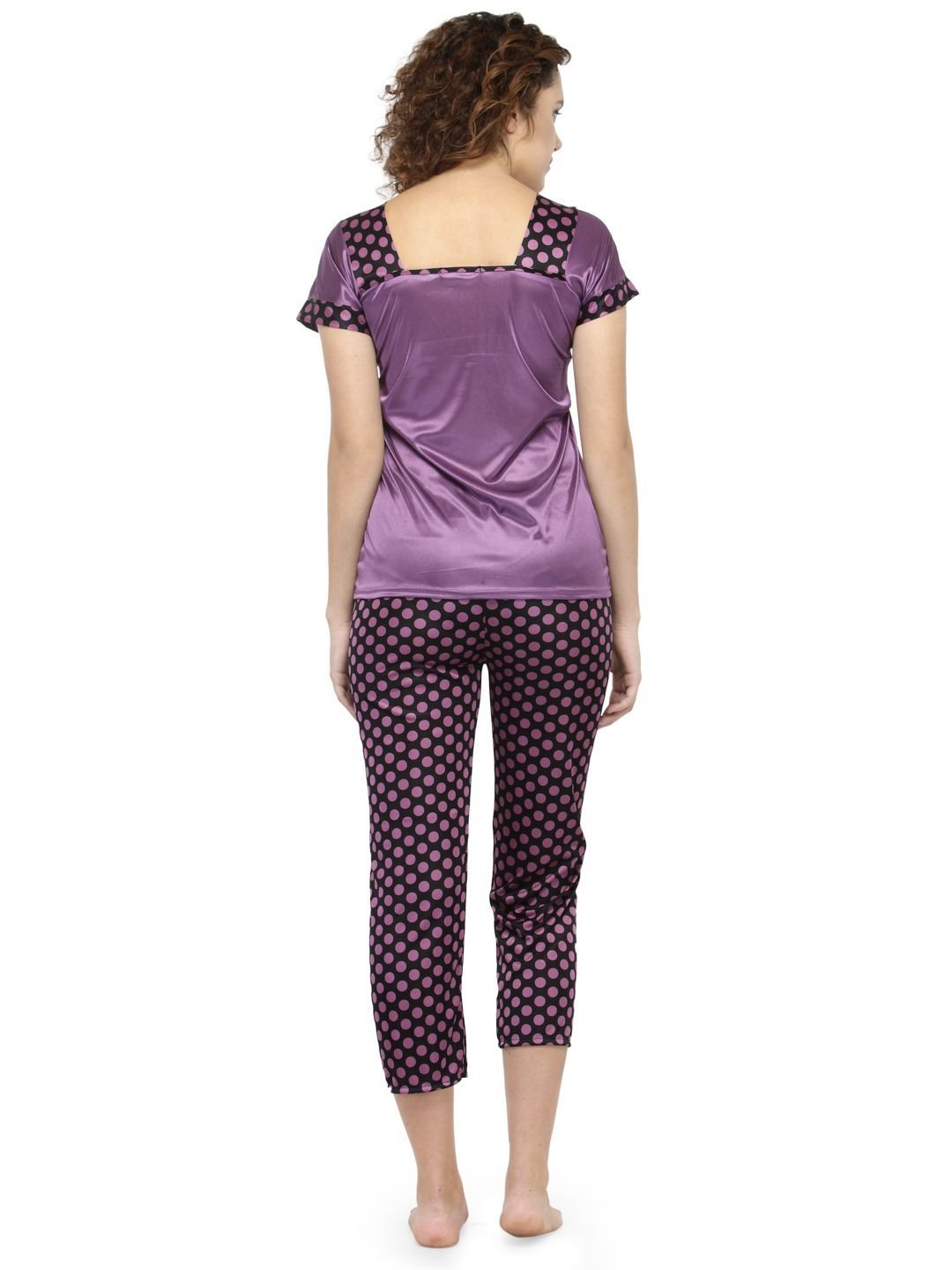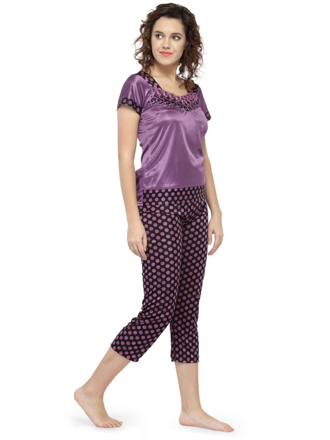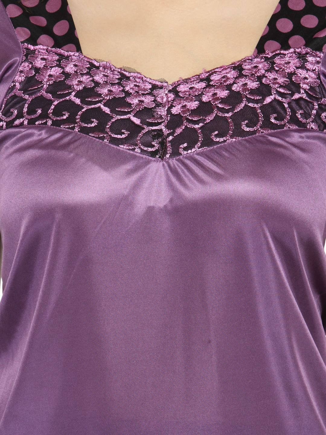 Embrace the comfort of this top and pyjama set from N-gal. The pyjamas have cute polka dots in a contrasting shade that make it endear. This nightwear is a combination of comfort and luxury and its an ideal choice for you, especially if you seek relaxation at night.