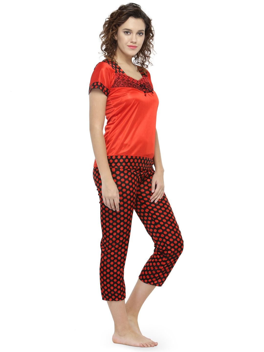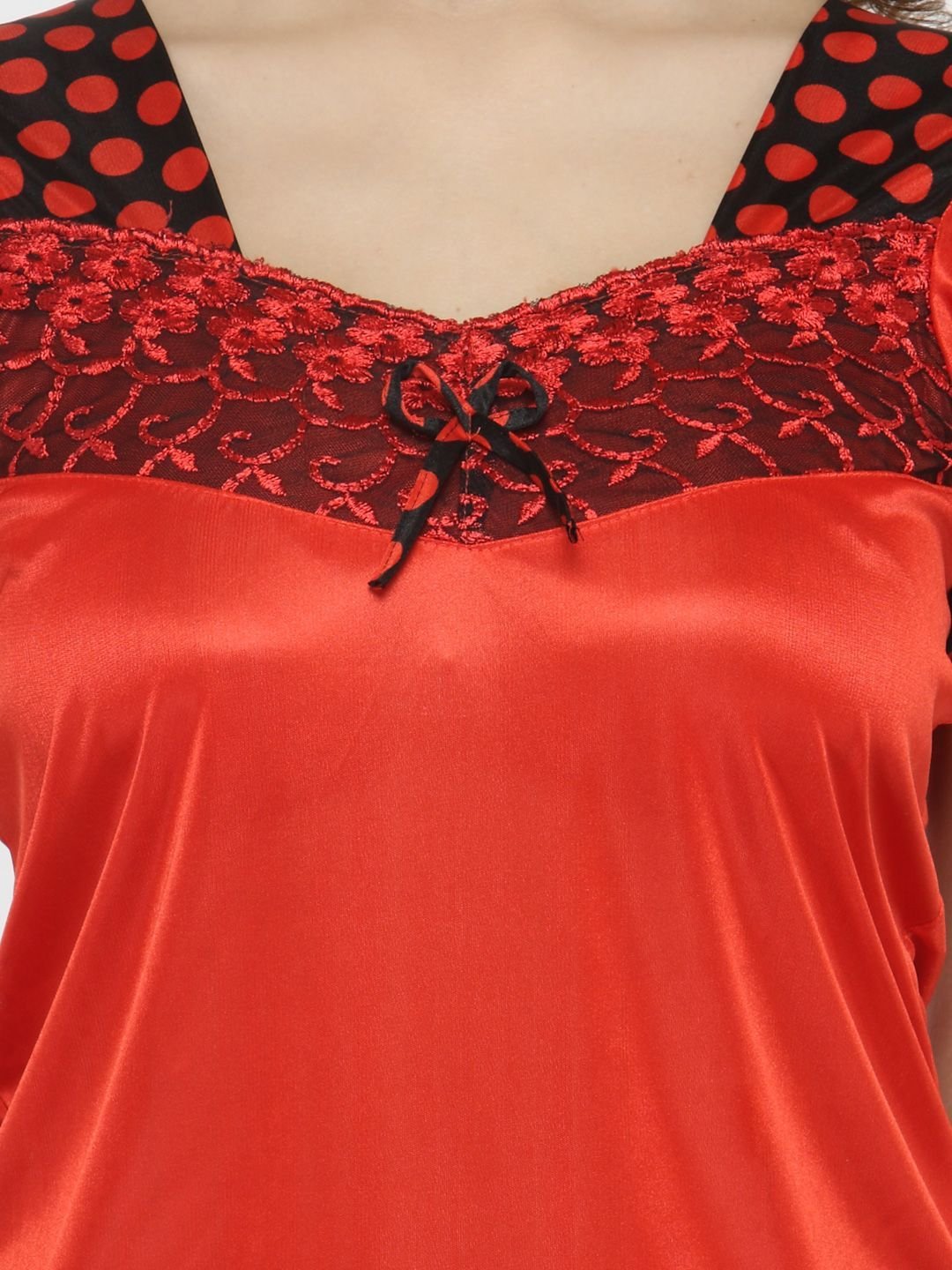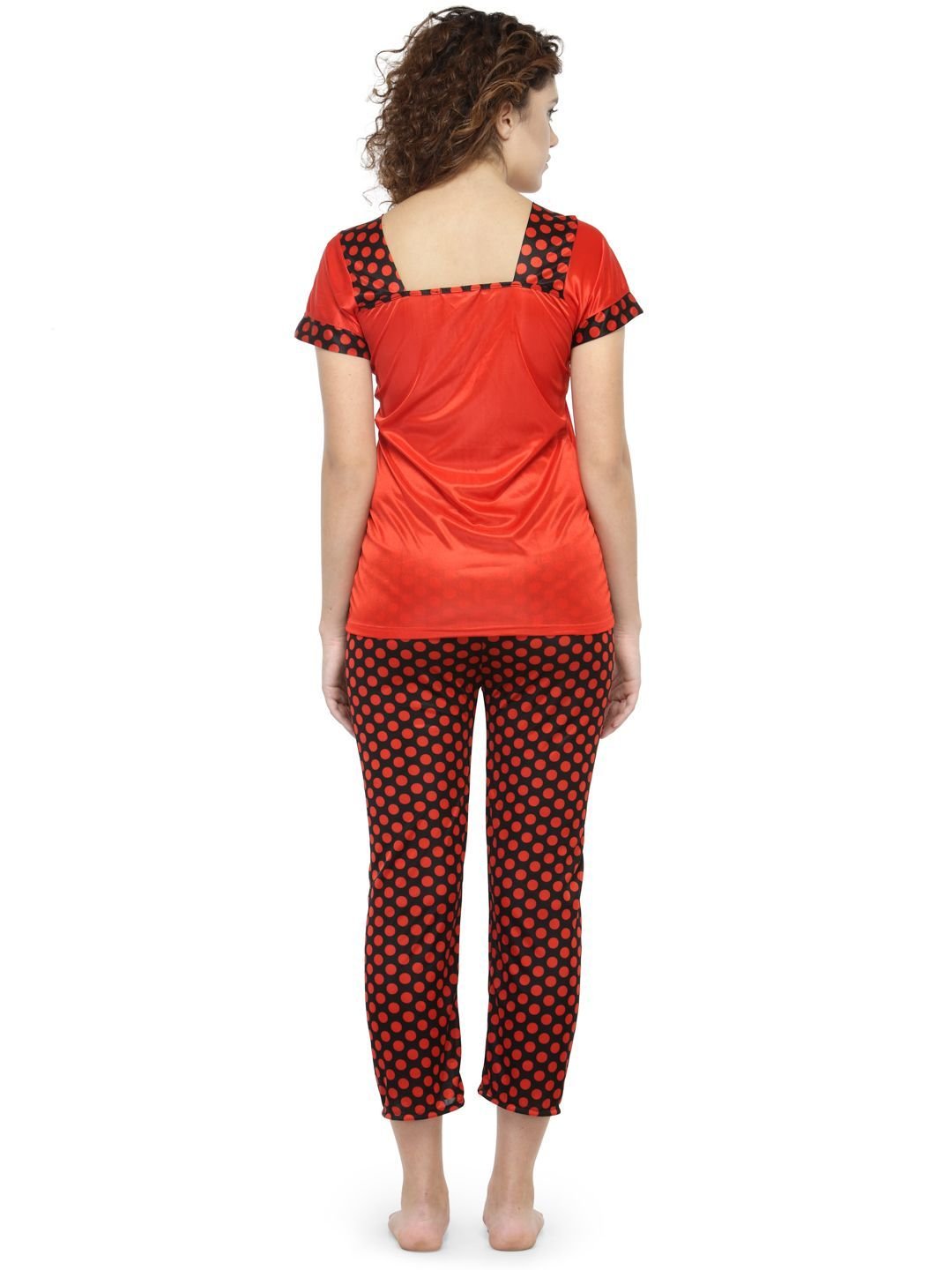N-Gal Women's Satin Short Sleeves Polka Dot Print Top Pyjama Set Nightwear Nightsuit_Red